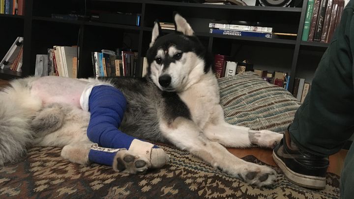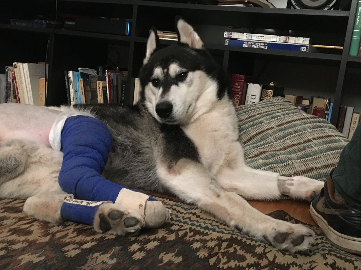 Mowgli is a gorgeous, joyful 3.5-year-old Husky who is visiting Berkeley, California with his companion, Reuben. The pair had just driven across the country from New Orleans in for Reuben to receive an operation on his hand. In a moment of bad timing, my family and I were driving up their street when Mowgli excitedly ran out of his yard and collided with the side of our car. We pulled over and were devastated to see what had happened. Reuben was already in the street with him giving him comfort, and neighbors came out and helped strategize about how to transport Mowgli to the nearest emergency vet.