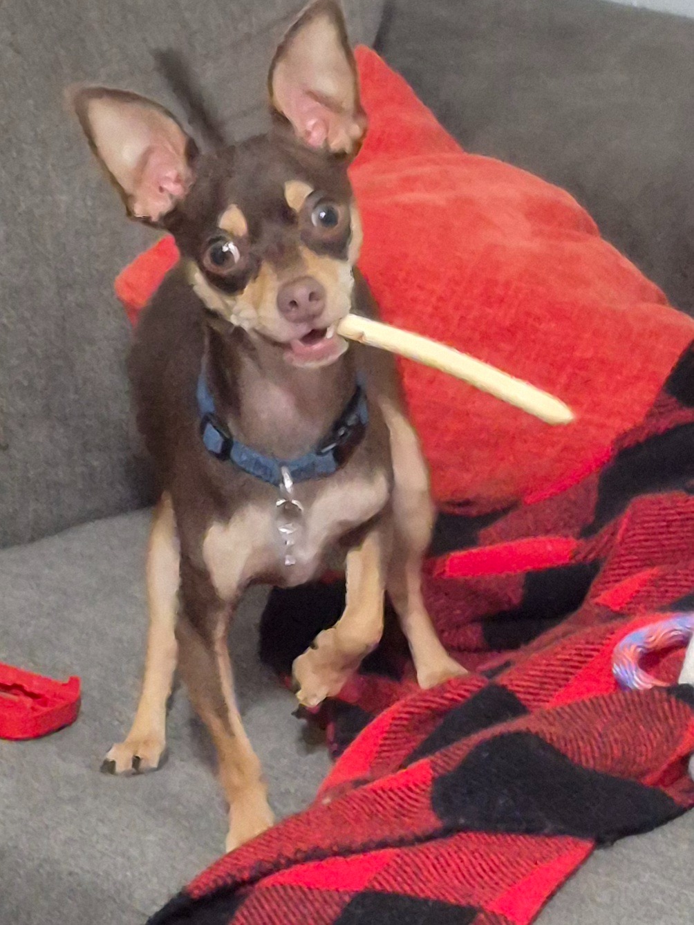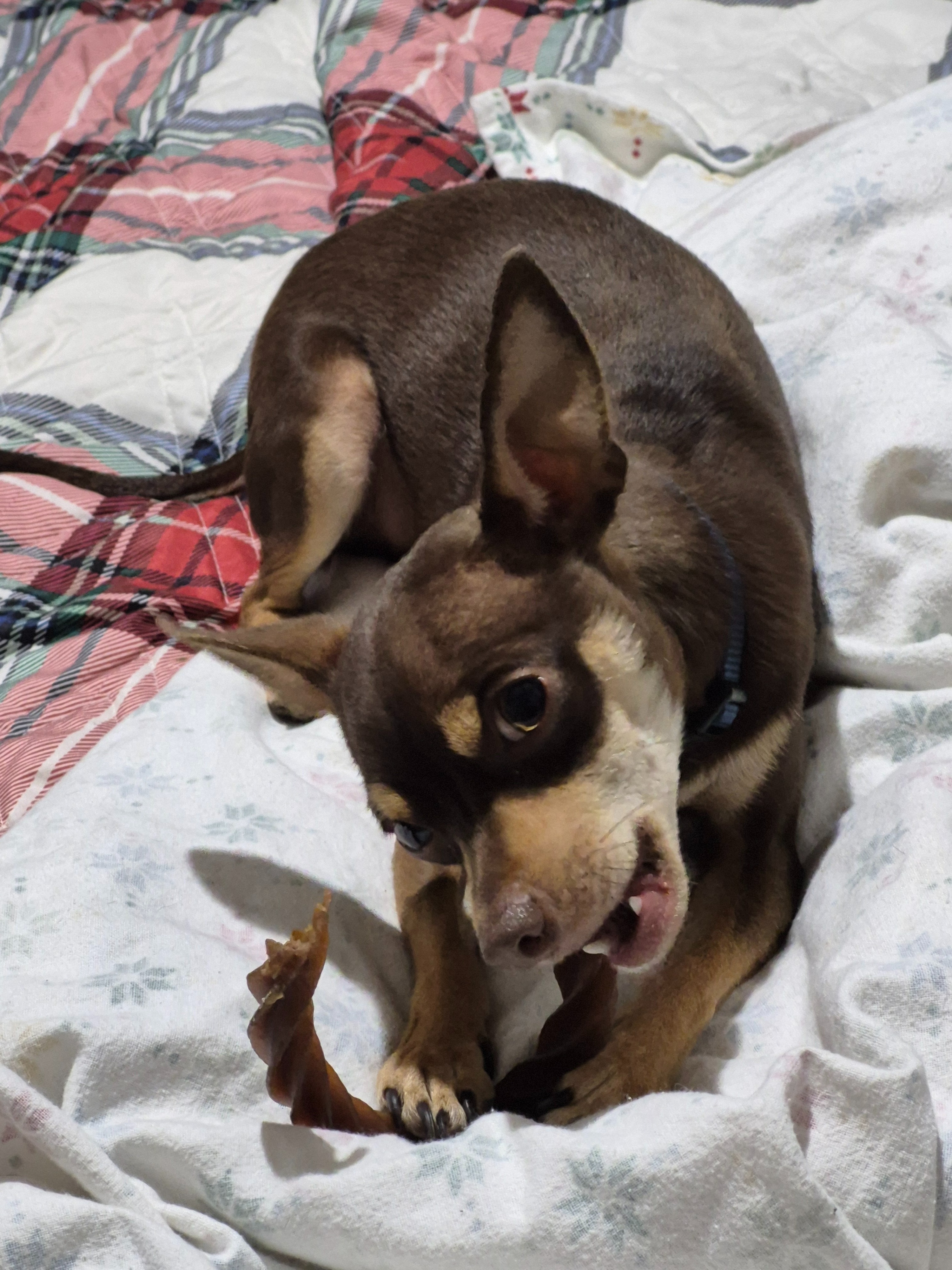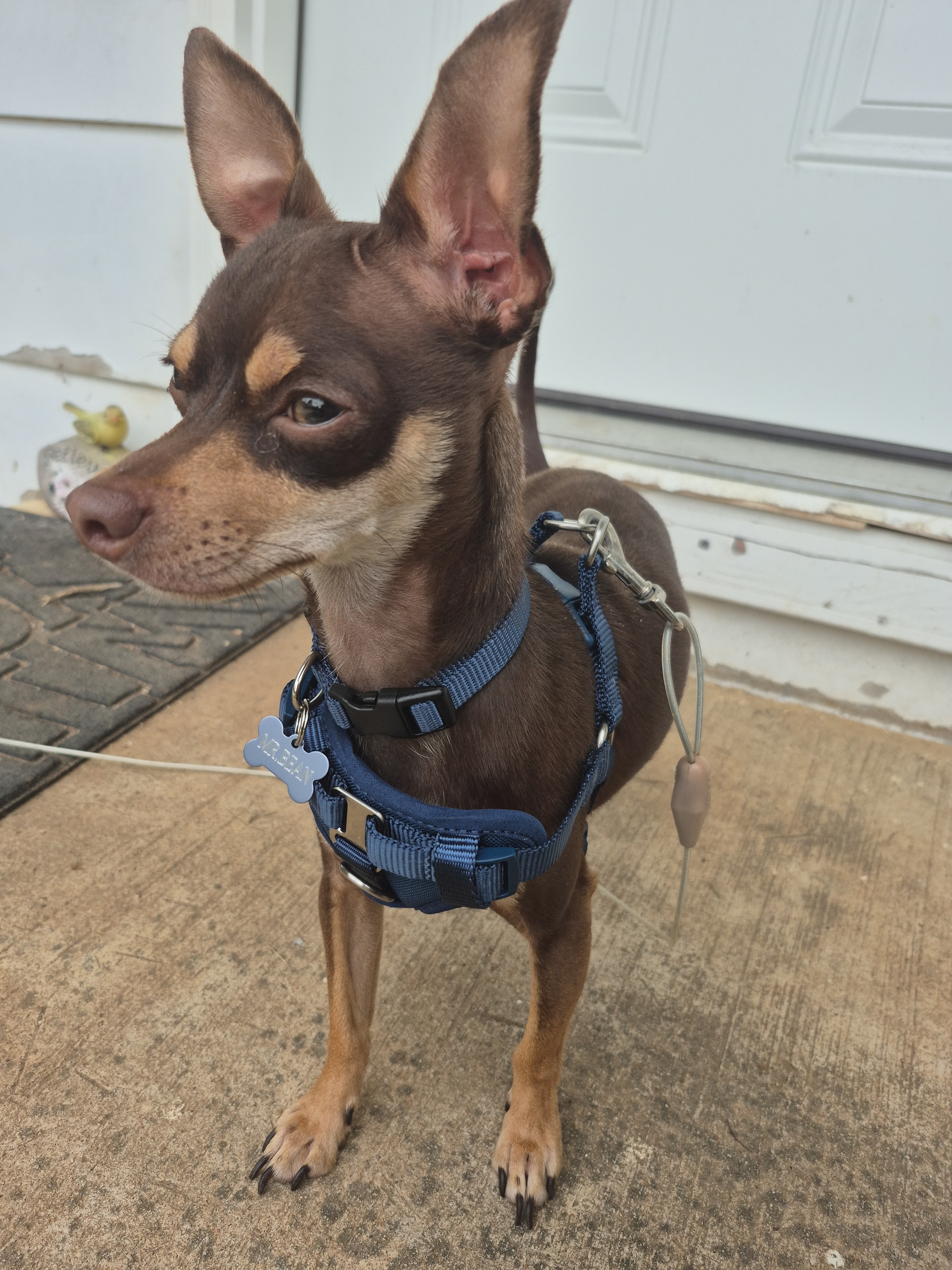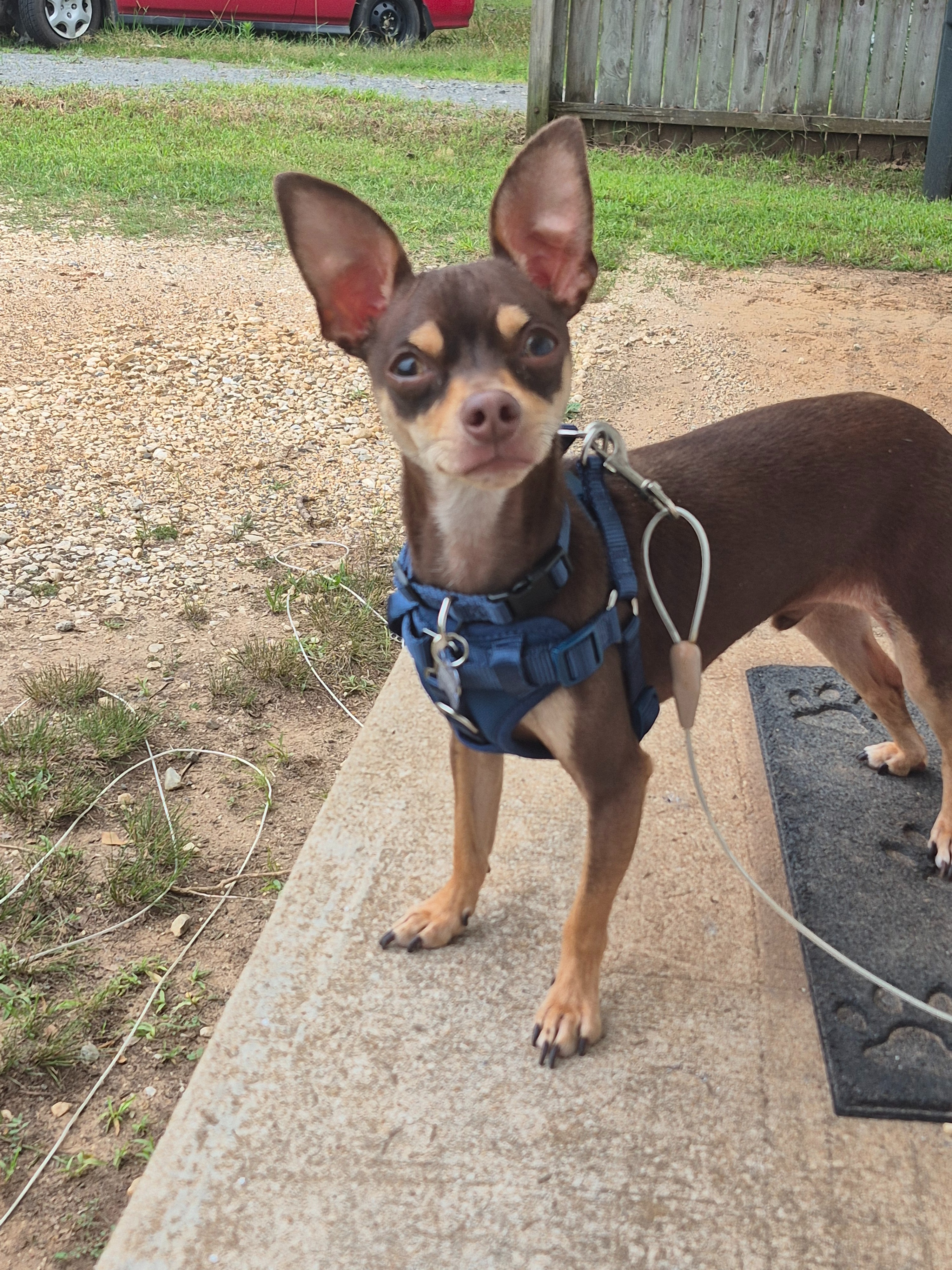 Mr. Bean is a 2-year-old chocolate deer faced Chihuahua who came into my care as a foster in June of 2025 after being returned by a previous owner. He is a gentle, loving dog who has already been through so much in his young life. Unfortunately, Mr. Bean has been diagnosed with level 3 medial patellar luxation in his right knee and level 2 in his left knee, which means he needs two knee surgeries to relieve his pain and give him a chance at a happy, active future.