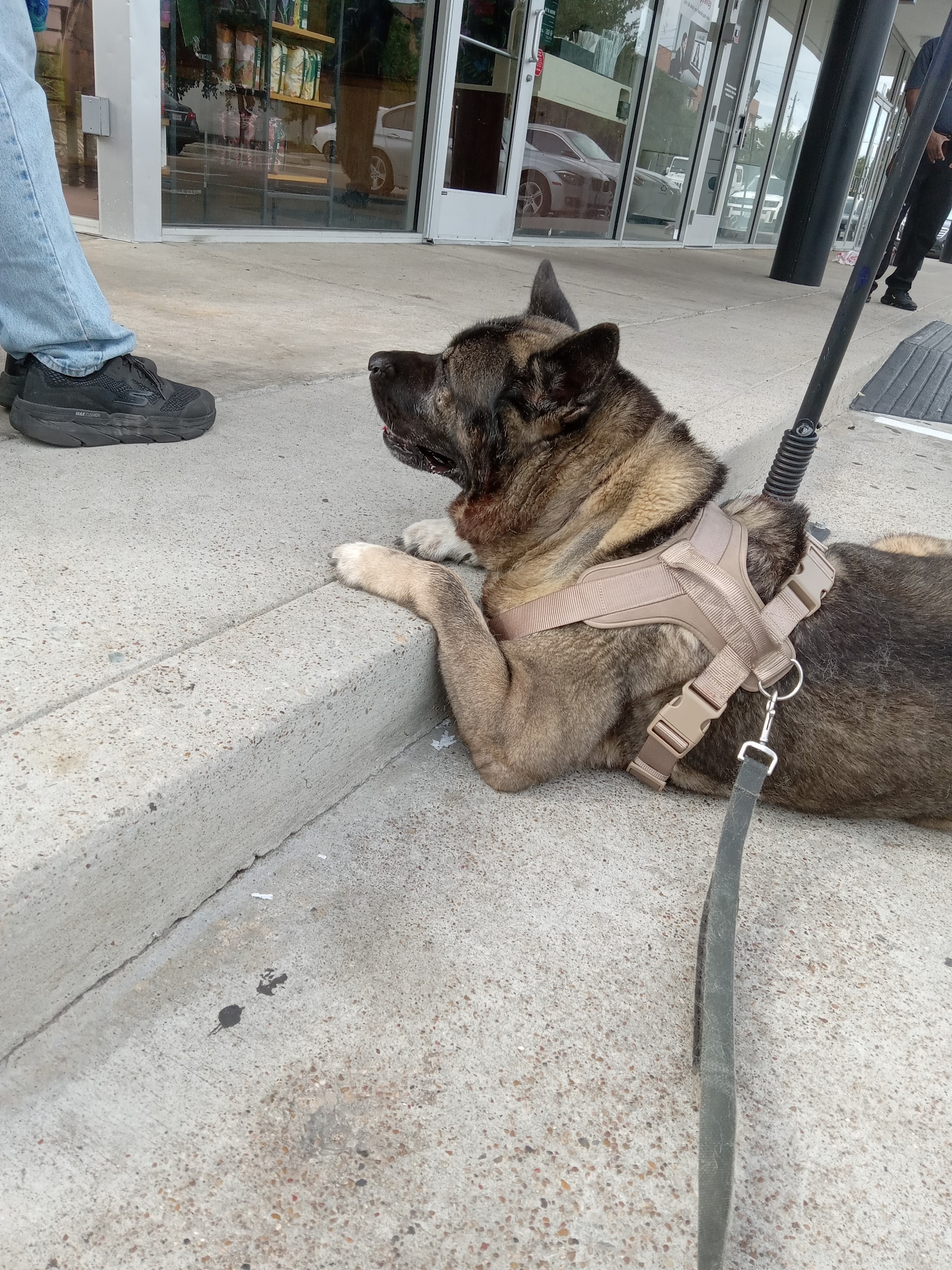 Enter this July and with his last bit of pocket change, Mr. Tom boarded a bus bound for FL from his home in TX. WITH the Akita, and all was well until they were forced to switch bus lines in Houston. The new driver forceably kicked a blind 75 year old gentleman and his impeccably trained dog off his bus. They slept on the sidewalk for a night and desperate, he called the woman who runs the rescue here in Jax. She put him up in a hotel (on her own dime) until my amazing friend, Sharita, could give him a ride with her to Lousiana, where Younger and I were going to transport a young Akita back here to Jax.