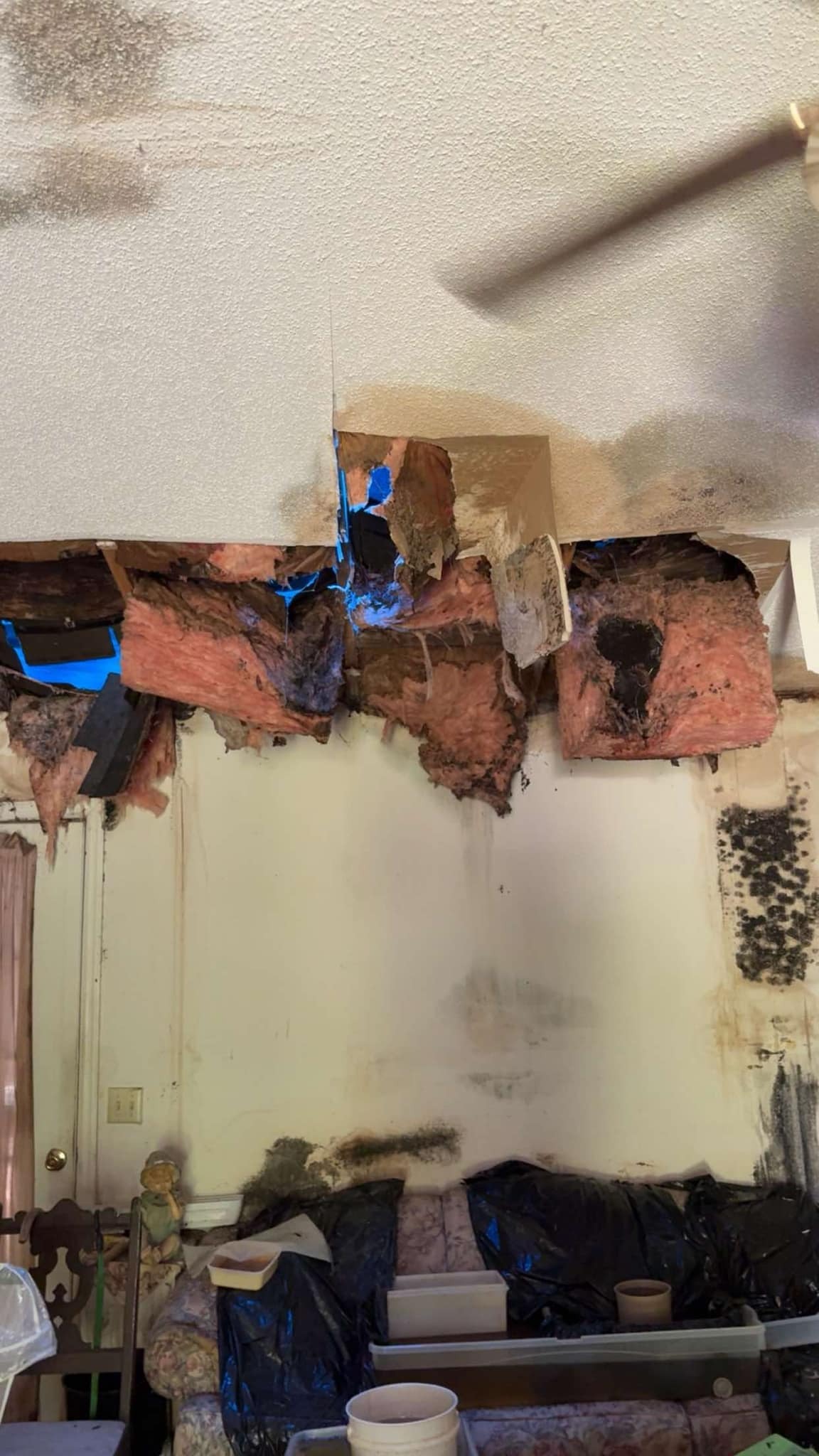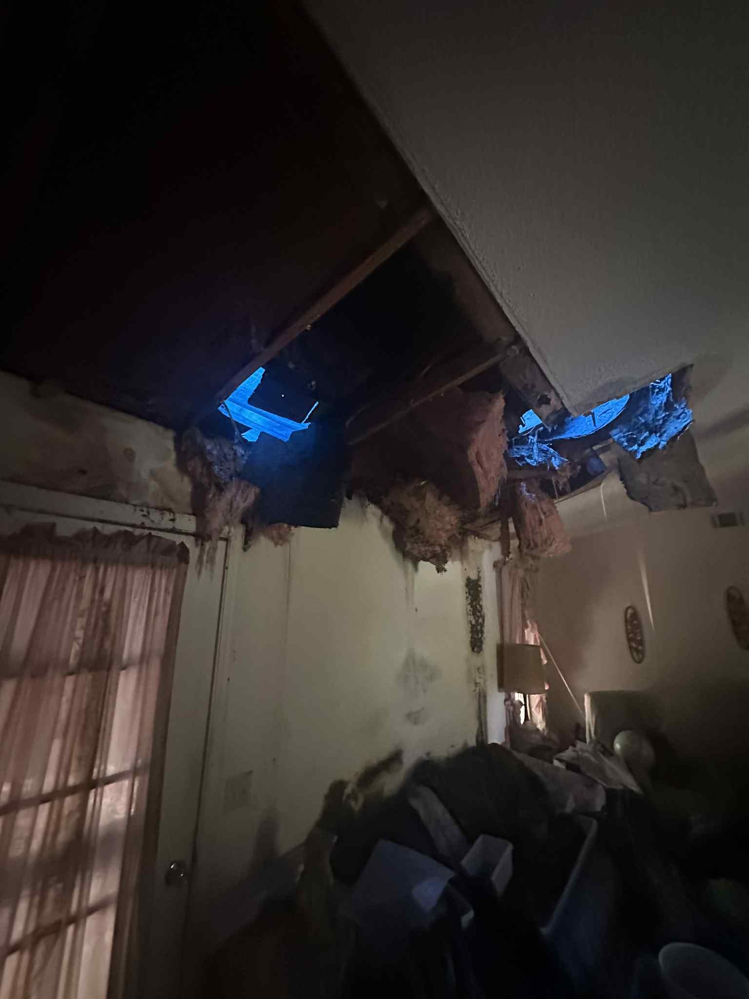 A few years ago, a tree damaged her roof during a storm. She had a company come out and tarp it but didn't know what to do from there. Time passed, and the tarp stopped keeping the water out, so she did the best she knew how without asking for help. Her home became unlivable with mold and water damage. On top of that, her HVAC isn't working, and the septic is backed up.