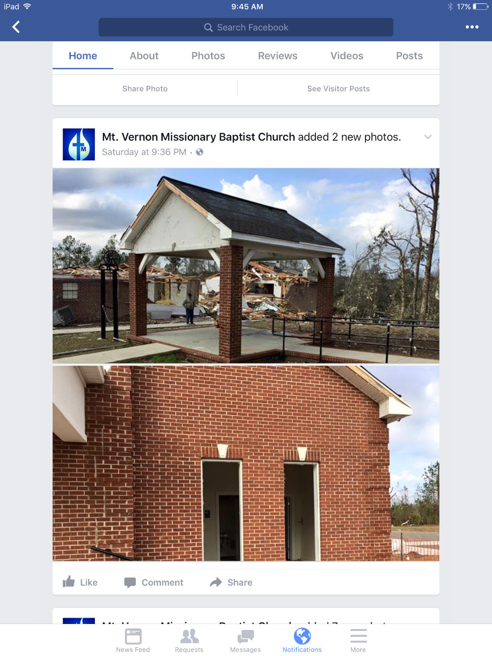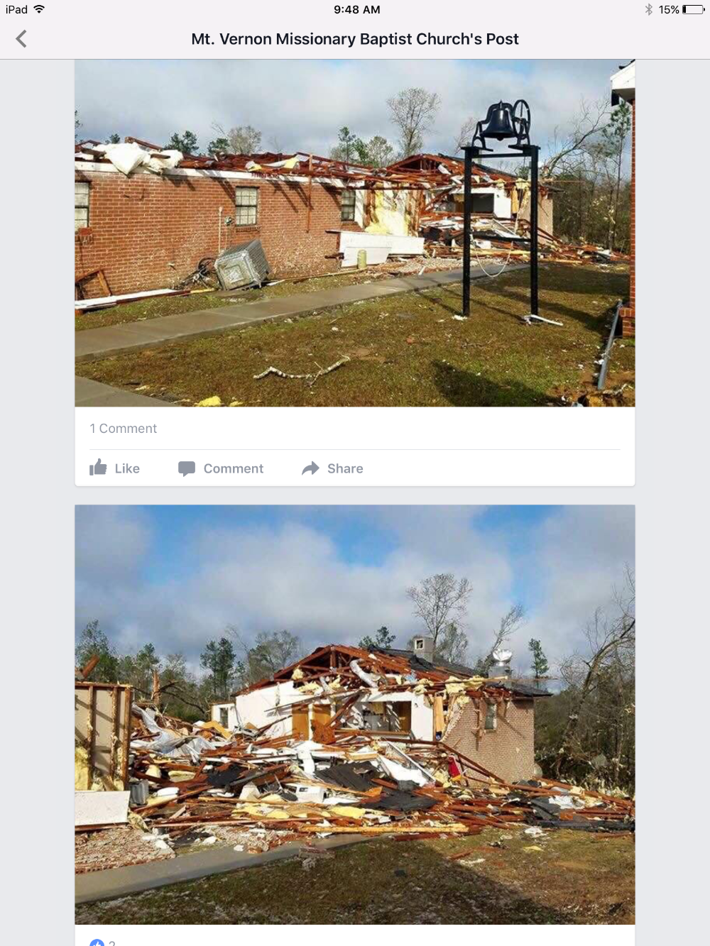 In 2013, my family's church which opened in 1900 in Petal, MS was destroyed by a devastating tornado. After great sacrifice, hard work, and determination the new Mt. Vernon Missionary Baptist Church opened less than a year ago. To see the church destroyed once again by a tornado on Saturday, January 21, 2017 is heartbreaking. Please donate to help the congregation rebuild once more.