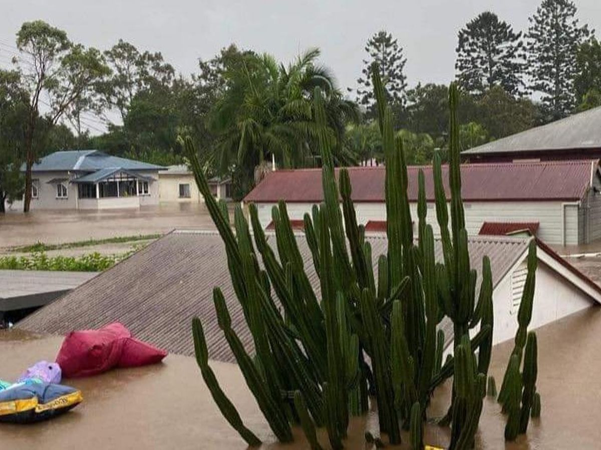 So friends. Our good mate Brett Murphy has lost everything in the floods. The photo is taken from his second-story looking over the neighbour's (submerged) garage. That house in the distance is actually a two-storey house. What you see is the second story.