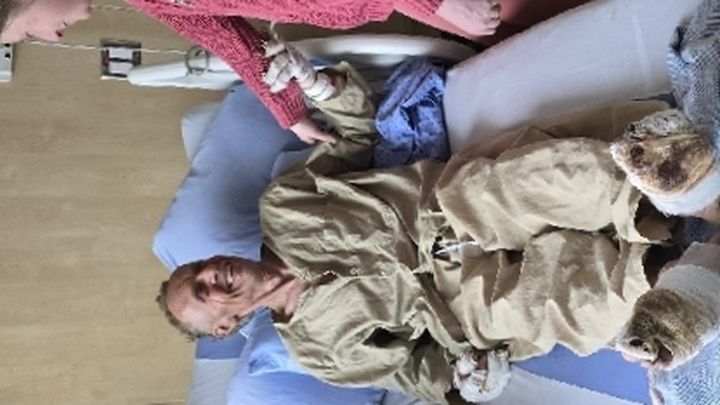 My dad was asleep on the top floor when the inferno began. Julia was visiting her son down the road. At 64 years old, he had to fight through smoke and flames to escape. He managed to get out with only the pajamas he was wearing. During the escape, he suffered third-degree burns to his hands and arms, and his feet were severely burned as the carpet melted beneath him. He is currently recovering at Penticton Hospital, facing a long road of healing for his hands and feet—the very tools he needs to perform his job.