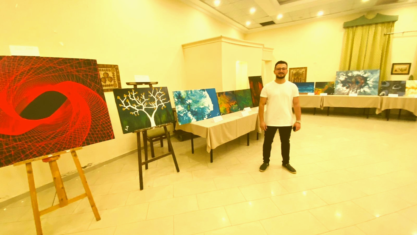 My name is Samy Mazin, once had it all in Gaza—a job I loved where I started my career path there for over 6 years, a lifetime of memories, a wife whose smile lit up my world, and a son whose laughter was the melody of our lives. I always had passion for my rare talent as an artist creating modern art in Gaza and holding few exhibitions. I’m a Palestinian artist who loved to live life, nothing too much. I just wanted a peaceful life like any other human being.