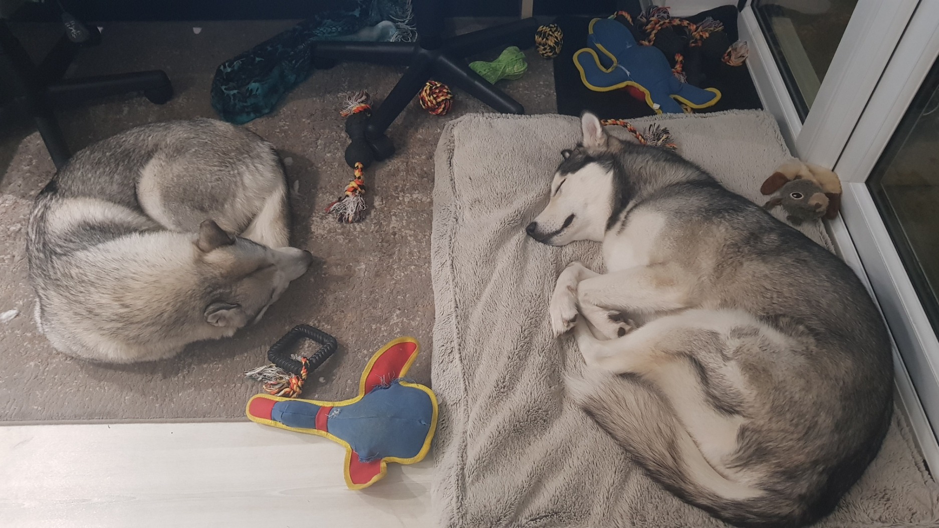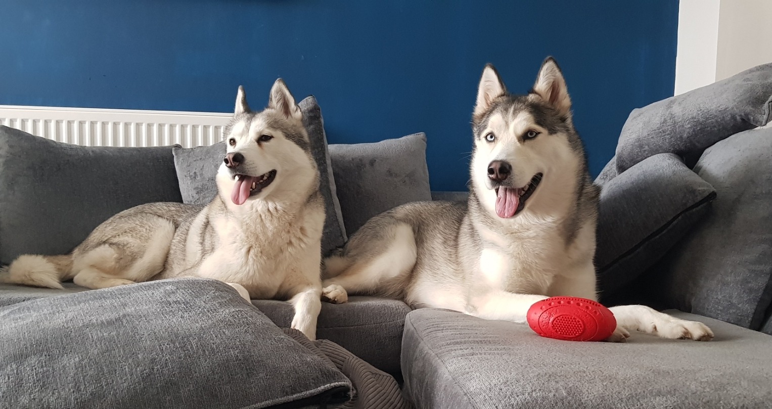 We are Magda and Reece and we have two amazing dogs - Ciri (Siberian Husky) and Winter (Siberian Husky/Alaskan Malamute cross). We have rescued both of them. Ciri was a stray abandoned on the streets of Manchester until she's found her way to the Cheshire Dog Home and from there to our home. We rehomed Winter 3 months later - officially 'rehomed' but realistically it was another rescue - supposedly had a home but it was one with very little human presence which resulted in a very lonely puppy.