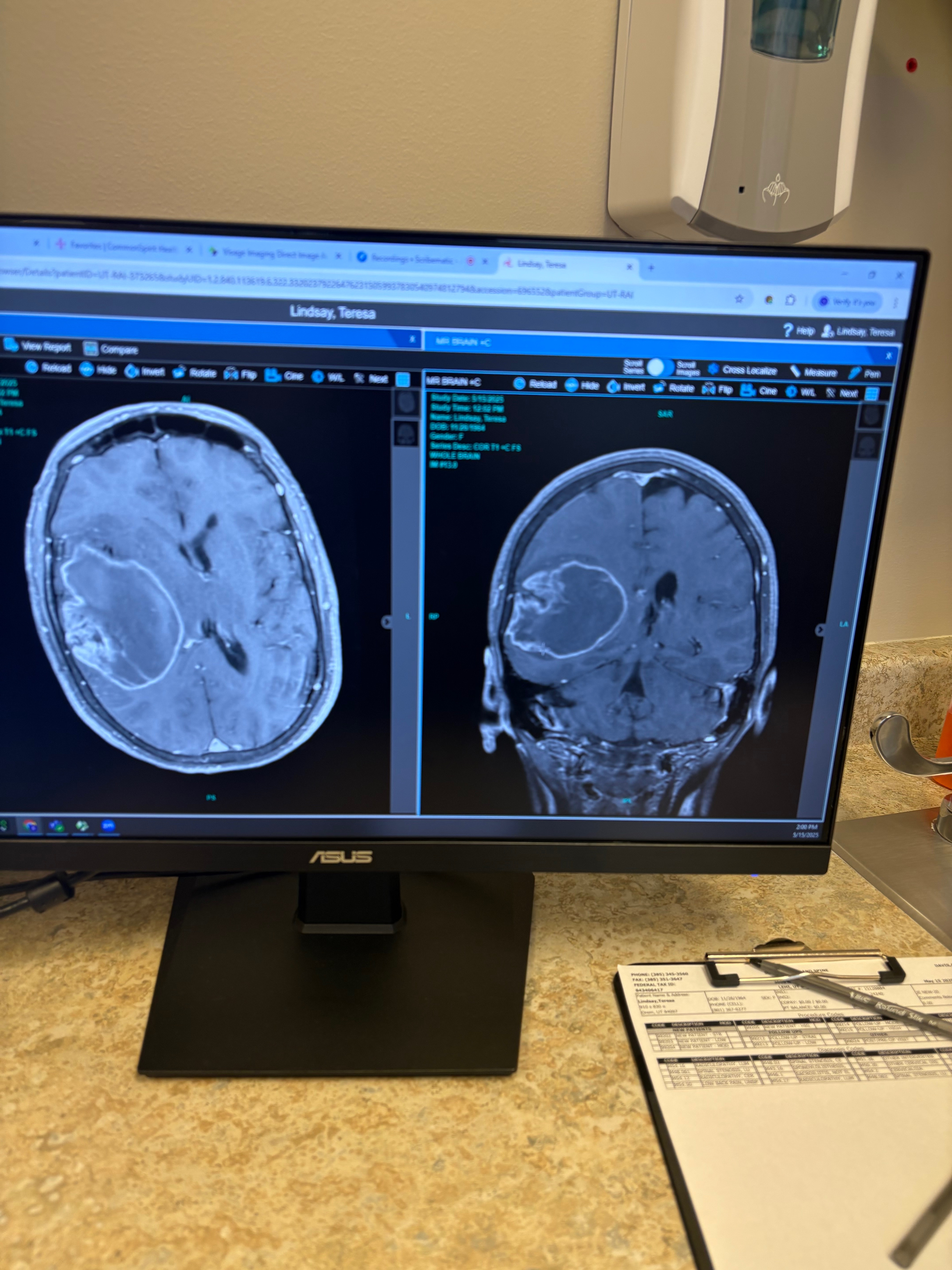 This all happened very quickly (all within the month of May) and it is very overwhelming in every aspect. At the beginning of May, she came to visit me in Midland, TX. I noticed something was off with her… speaking slower than normal and very tired. Not like her at all. I told her that I wanted her to get checked out to make sure everything was okay. Over the next couple weeks, more people started telling her this and then her lip started drooping and left leg started dragging and her balance was off. Then she got into a little fender bender. That really pushed her to get an MRI asap.