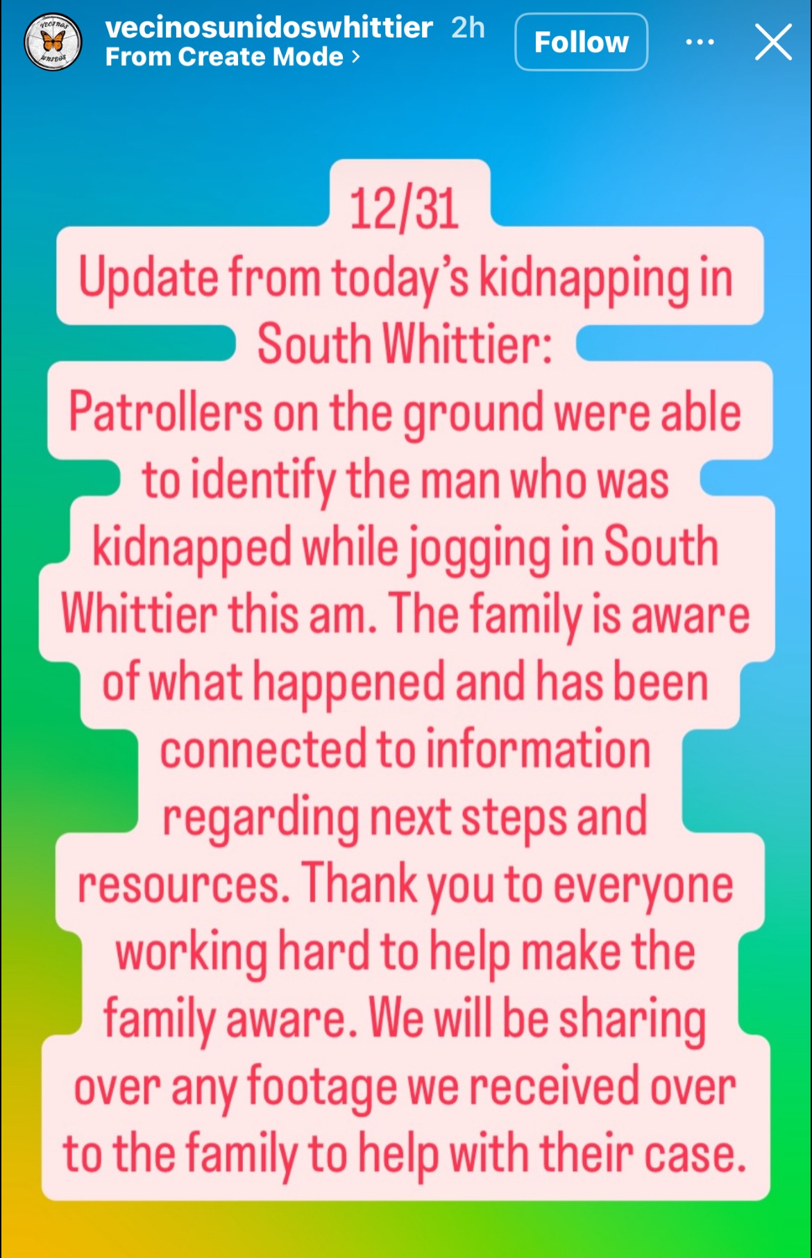 My step dad has been a part of our family and community for many years. He is a hardworking man who has always put others before himself, never asking for anything in return. On December 31st at 10 am, he went out for a jog in Whittier, CA, and our lives changed in an instant. ICE agents detained him without warning, and for hours, we had no idea where he was. The amazing neighbors in our community came together, sharing Ring camera footage that finally helped us locate him. Even though he did not resist, he was thrown to the ground and taken away by the agents.