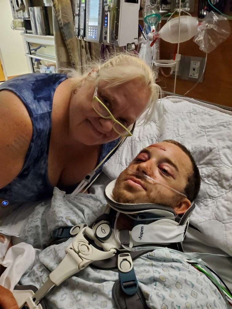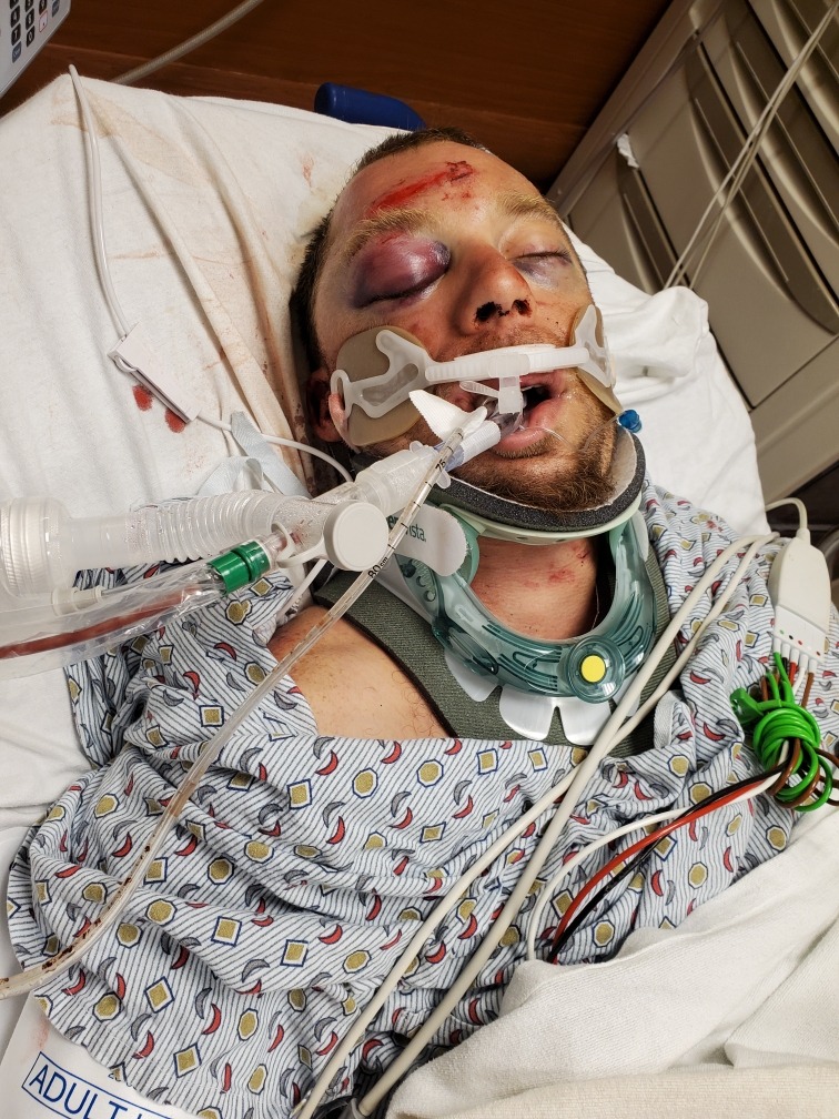 On August 1st, my son Nick was in an extremely bad accident which resulted in him being life-flighted to Presby Trauma Center. Nick was on an endotracheal tube (breathing tube) and had a chest tube in due to having a collapsed lung, which he remained on for 3 days. He has multiple fractures in his spine at C5, C6, C7, T12, and L1. He also has fractures on the right side of his face and surrounding his eye, along with a laceration on his forehead that was stitched closed. He has fractures in his left wrist that he had surgery on. Nick also had surgery to get pins and plates to repair the multiple pelvis fractures. Nick has multiple broken toes. He's no weight-bearing on his left side and will be in a brace from his neck to pelvis for at least 6 weeks.