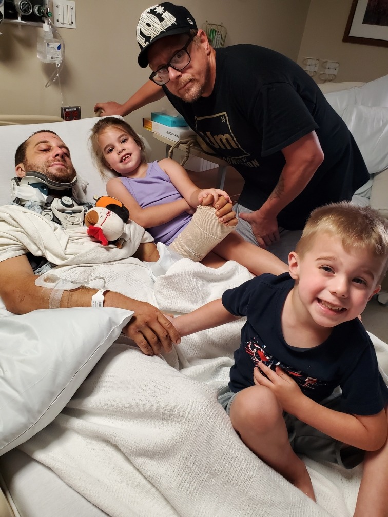 With all his injuries, he's going to need extensive physical therapy and rehab, which means he'll be out of work until he's fully recovered. Unfortunately, Nick has no medical insurance at this time, so all these expenses are adding up. Nick's a single dad with 2 beautiful kids that rely on him. We plan on getting a hospital bed set up in my dining room for when he's able to come home, but with being on a fixed income myself, we'll need help with covering the cost of the medical bills and Nick's monthly bills while he recovers, which is where any and all donations will be put towards.