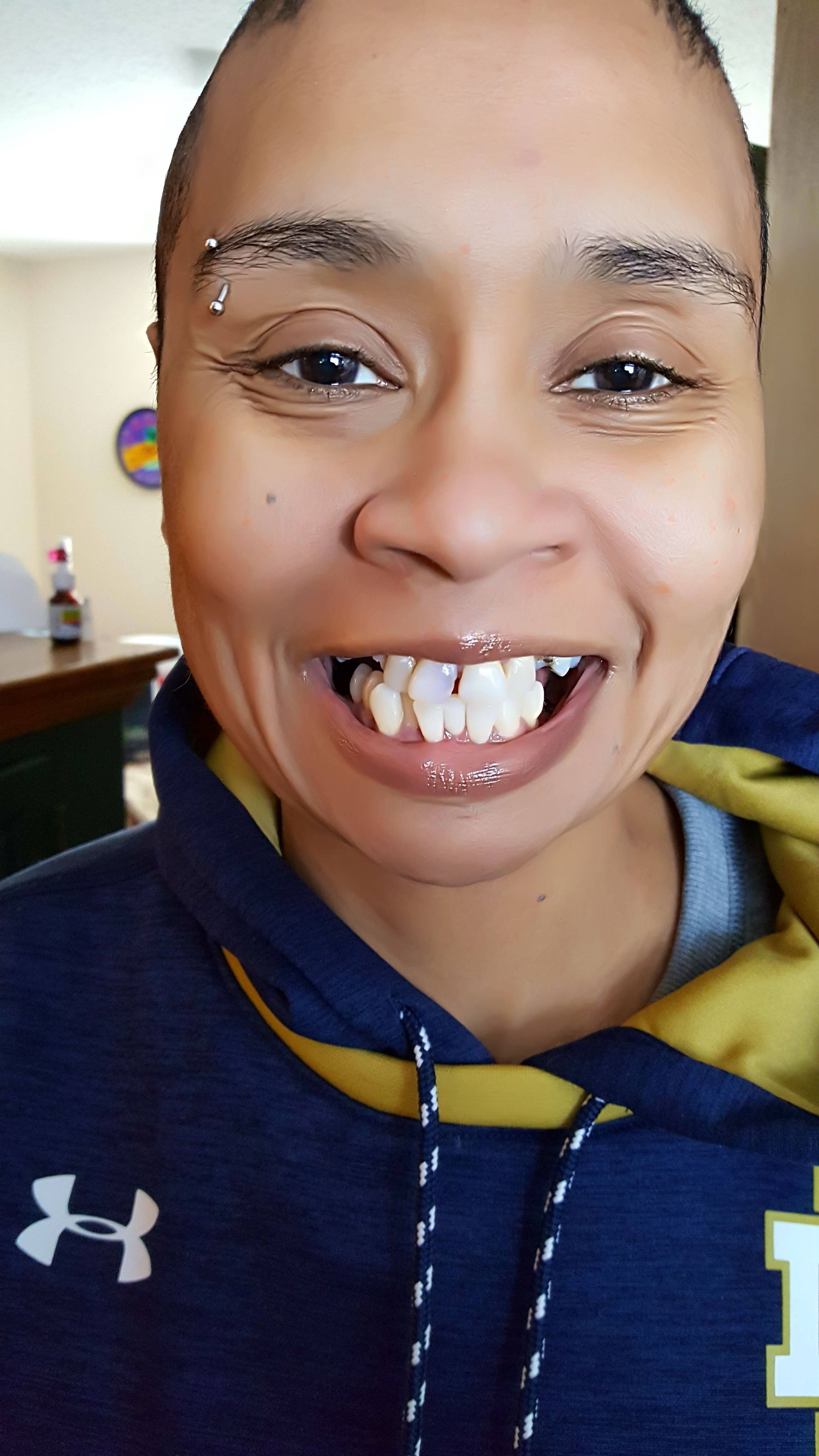 Nicole is a CMA (Certified Nursing Assistant). With that said, she is face to face with people every day, trying to make them feel better and help in any way she can. She loves what she does. The fact is this: not being able to smile and always on guard if someone will see her teeth are wobbling around in her mouth or her voice sounding different than what it truly sounds like may not seem like a big deal, but it is. She works very hard, as so many others do. She is the only source of income for our family.