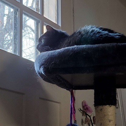 They let me meet her, and she rubbed all over me, purred, even drooled a little. I was sold. I named her Niobe and took her home. Two days later, I call the SPCA clinic and talk to the vet there, who happens to be a vet I worked with a few years prior. I tell her Niobe is drinking and peeing up a storm, and she either has diabetes or a kidney issue. "No way!" the vet says. "She's only 6." But I take her in and test her, and sure enough, she has diabetes.