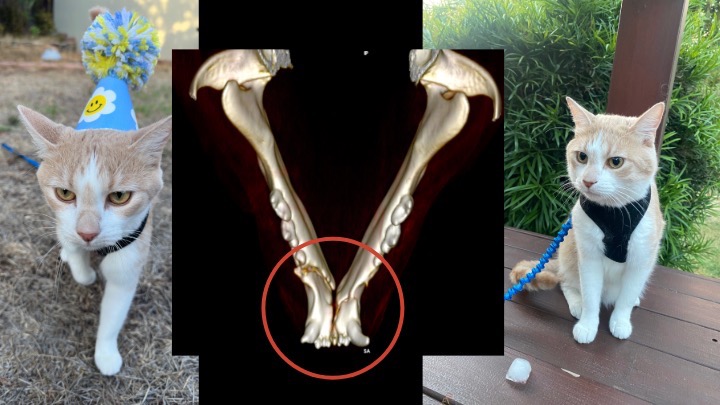 A couple months ago, Norman suffered a traumatic injury that shattered his lower jaw. It was a heartbreaking and terrifying experience. He had to be rushed to an emergency vet, where they placed a feeding tube to keep him nourished and stabilized while we prepared for specialty surgery to reconstruct his jaw.