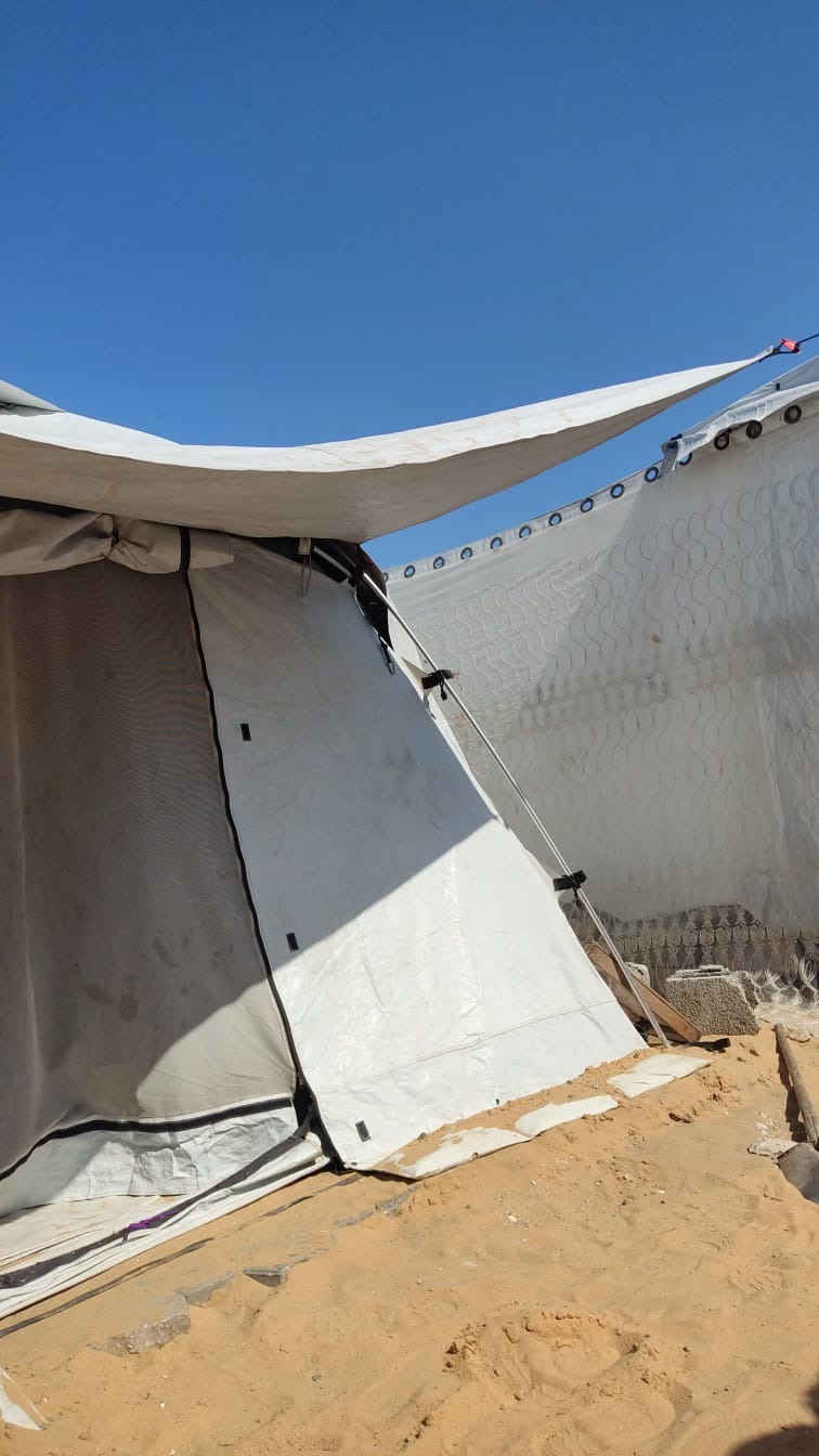 اليوم أعيش أنا وزوجي في خيمة بعد أن فقدنا منزلنا ومصدر دخلنا. الحياة في الخيام قاسية جدًا، مع نقص الطعام وقلة المياه النظيفة والظروف الصعبة التي نعيشها كل يوم.
