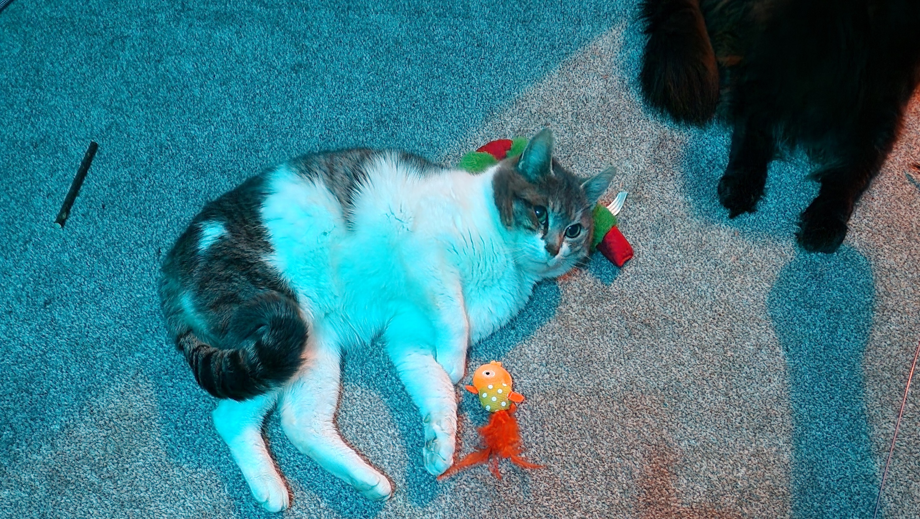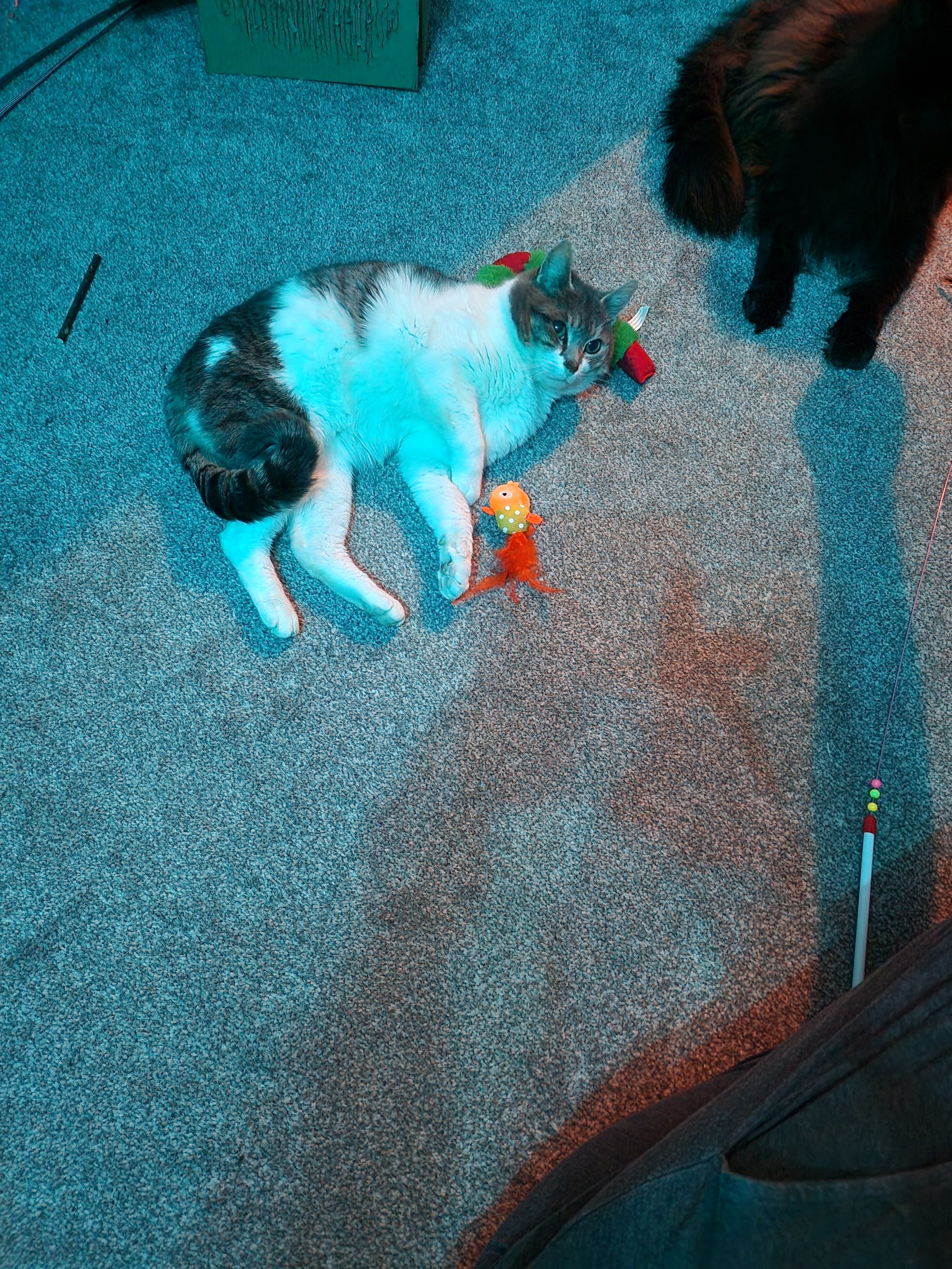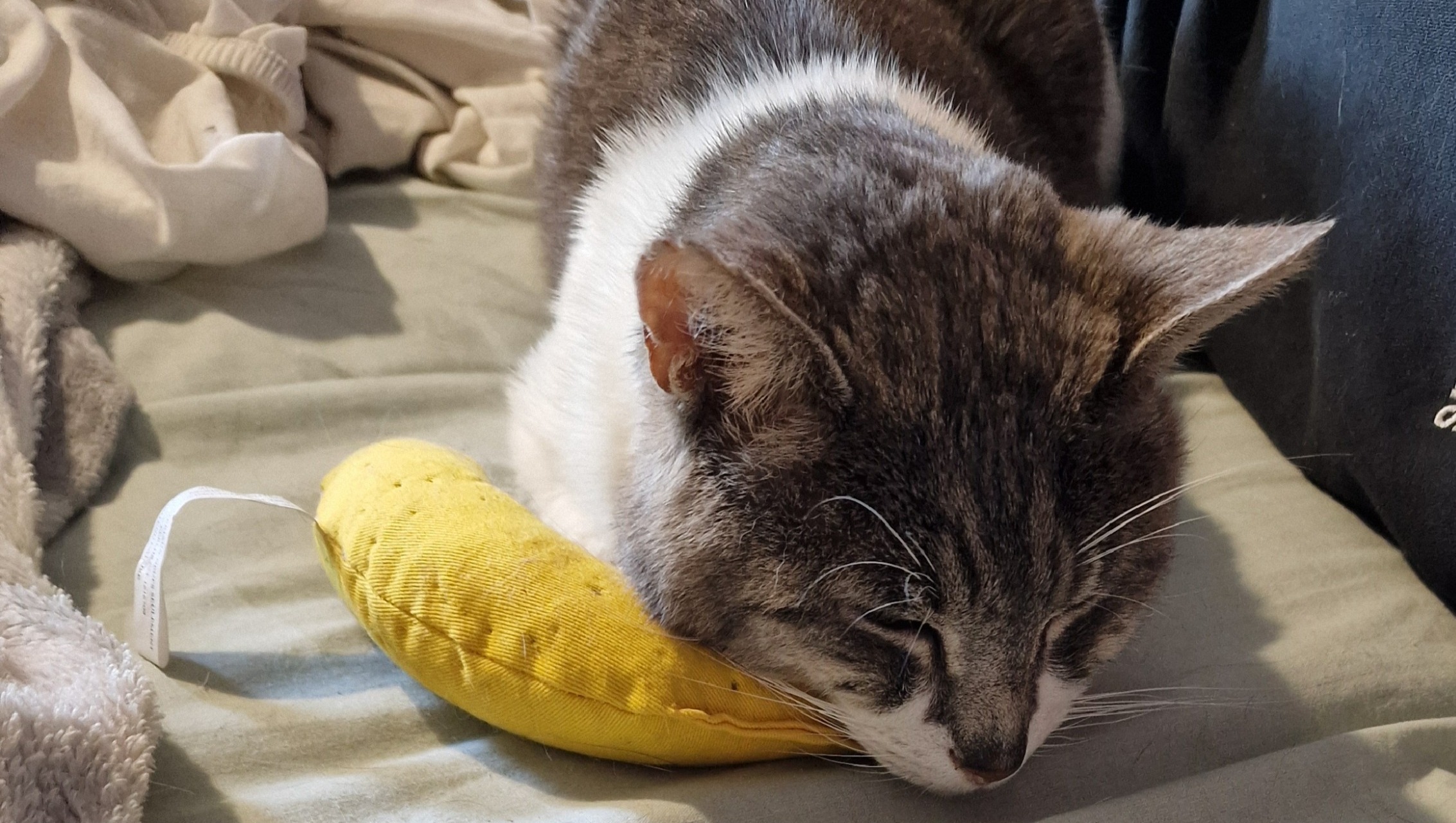 Two months later, He surprised us one night by jumping on our bed and sleeping with us, it was his bed now. Odin was learning from our other kitties how to play with toys, how to gently take treats, and in no time he was the most cuddly cat.
