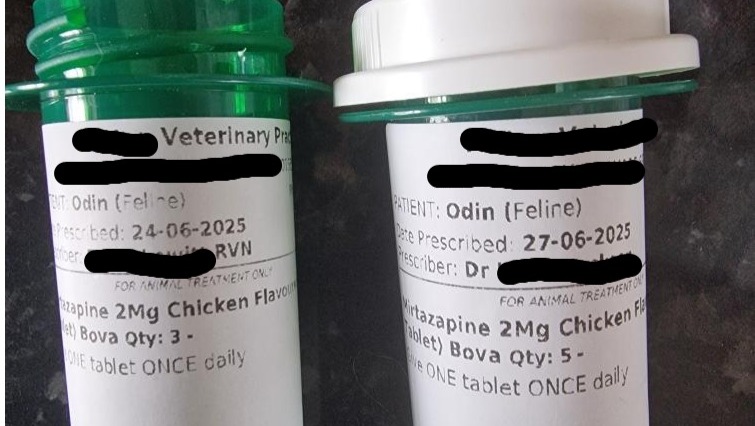 On Friday 27th we were back to the veterinarian, where they said they see slight improvement in Odin so they gave us 3 days worth of tablets called 'Mirtazapine' as an appetite stimulant, 'Pronefra' to help bind phosphates and 'Aqupharm' saline drip to help with Odin's hydration. In addition to that, Odin has ProPlan Hydra care (hydration supplement) and his special Renal Function food.