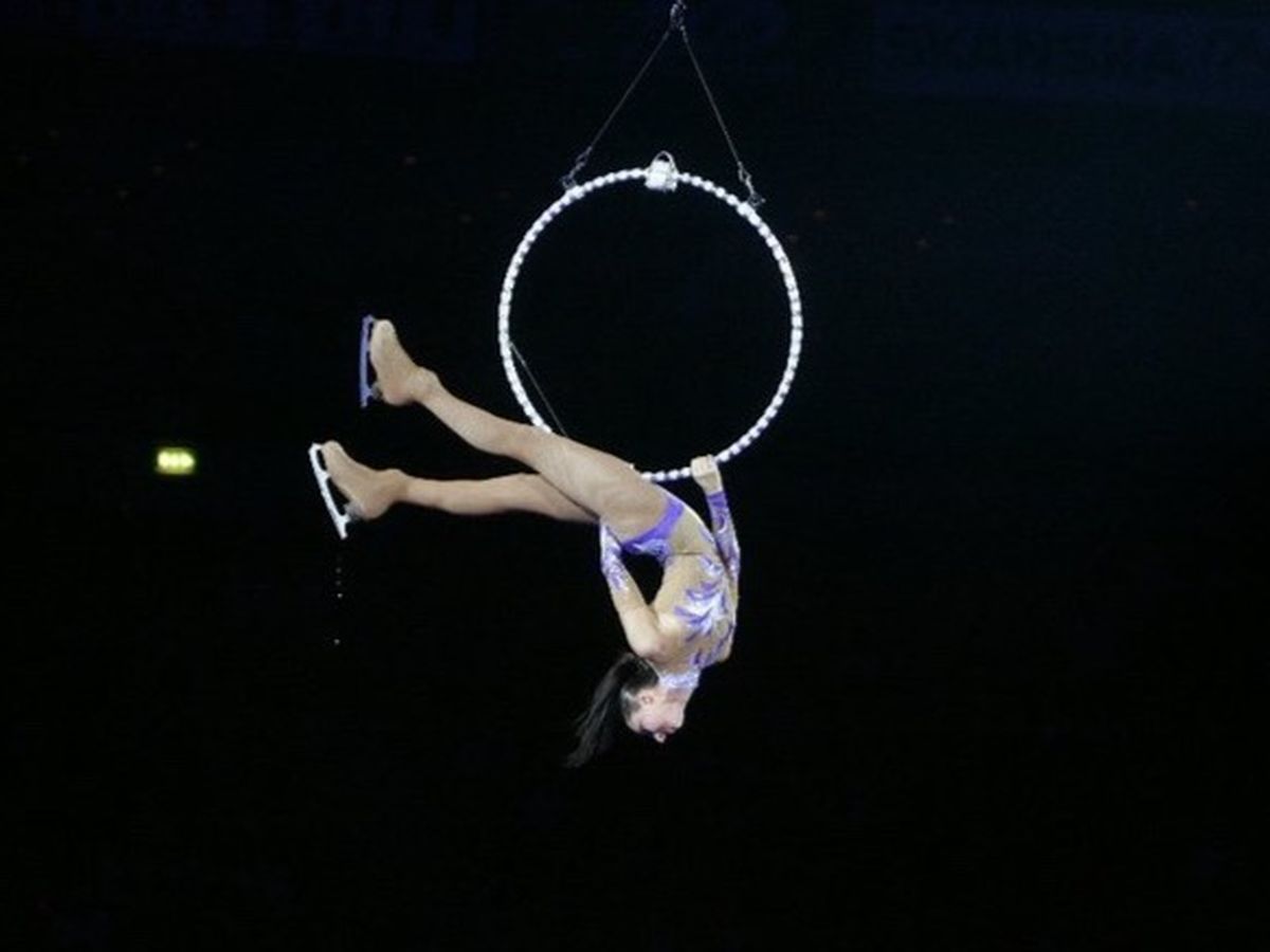 Olga was being pulled around by a motorised system connected to the Arena’s ceiling when she crashed onto the ice. She was immediately taken to hospital with life threatening injuries.