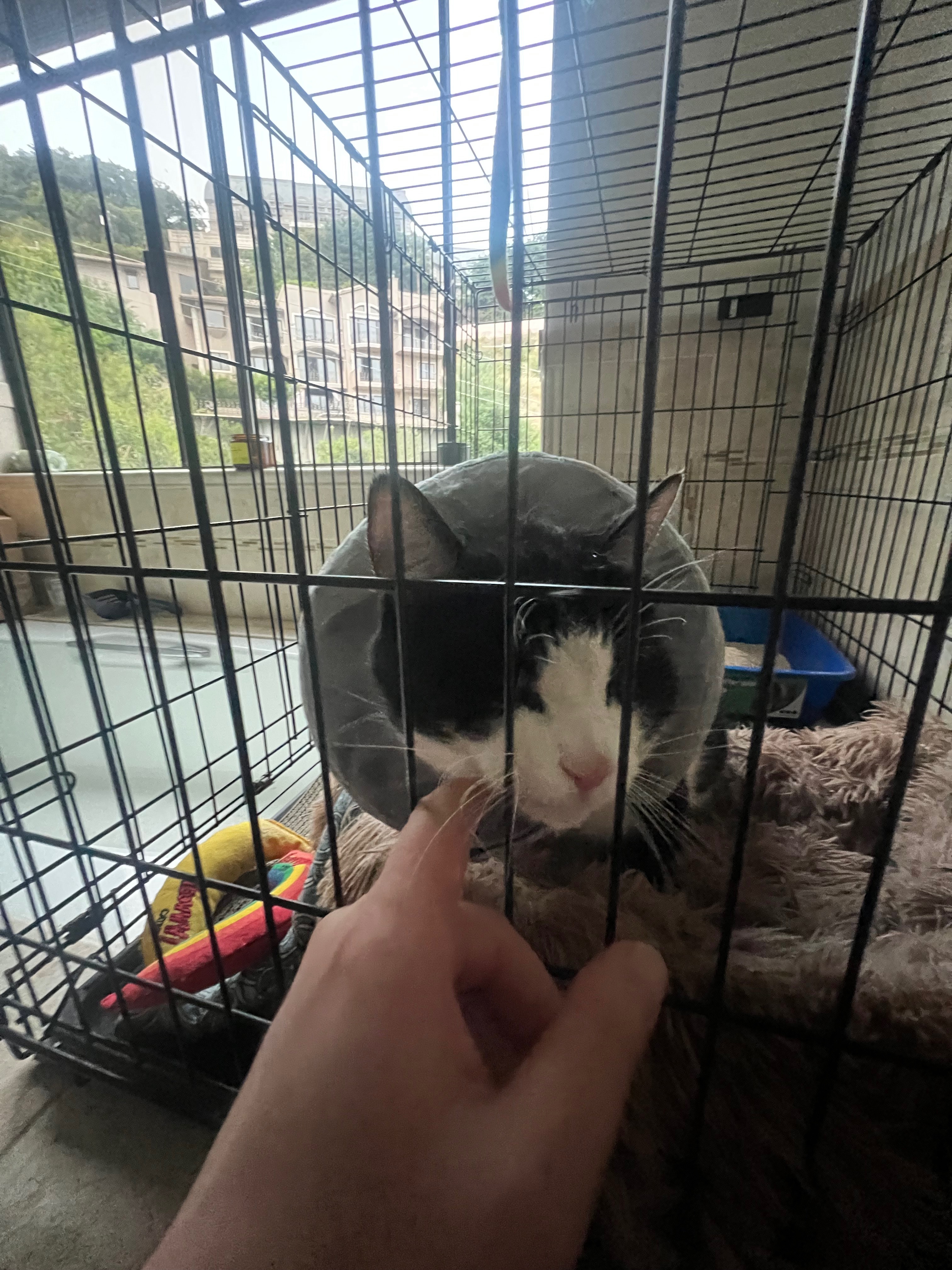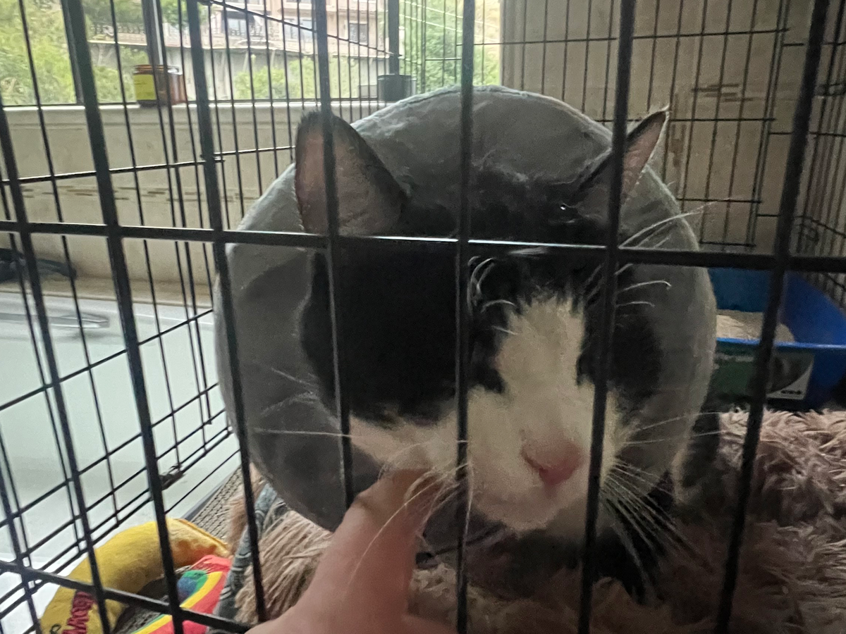 Hi everyone! My name is Olive, this is Olive-kitty! A friend named him when we rescued him injured on a sidewalk. He has some pretty bad animal fight related injury on his back and does not have much time. It was too deep for antibiotics to work and it needs surgical intervention.