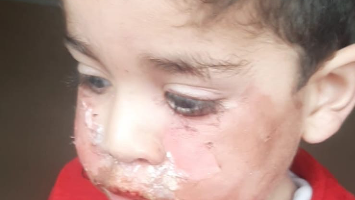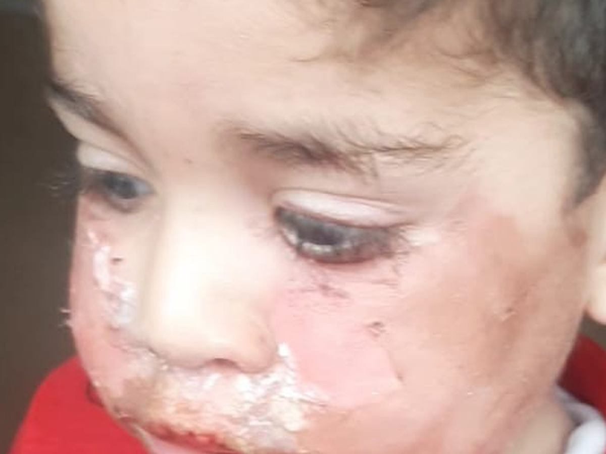 My son Rawad was badly burned on his face.