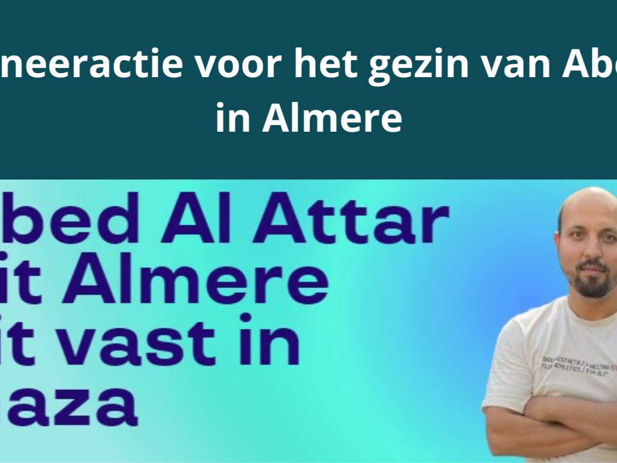 Abed Al Attar is een inwoner van Almere. Hij zit sinds oktober 2023 vast in Gaza. De tot nu toe ondernomen pogingen om hem naar Almere terug te halen, hebben helaas niets opgeleverd.