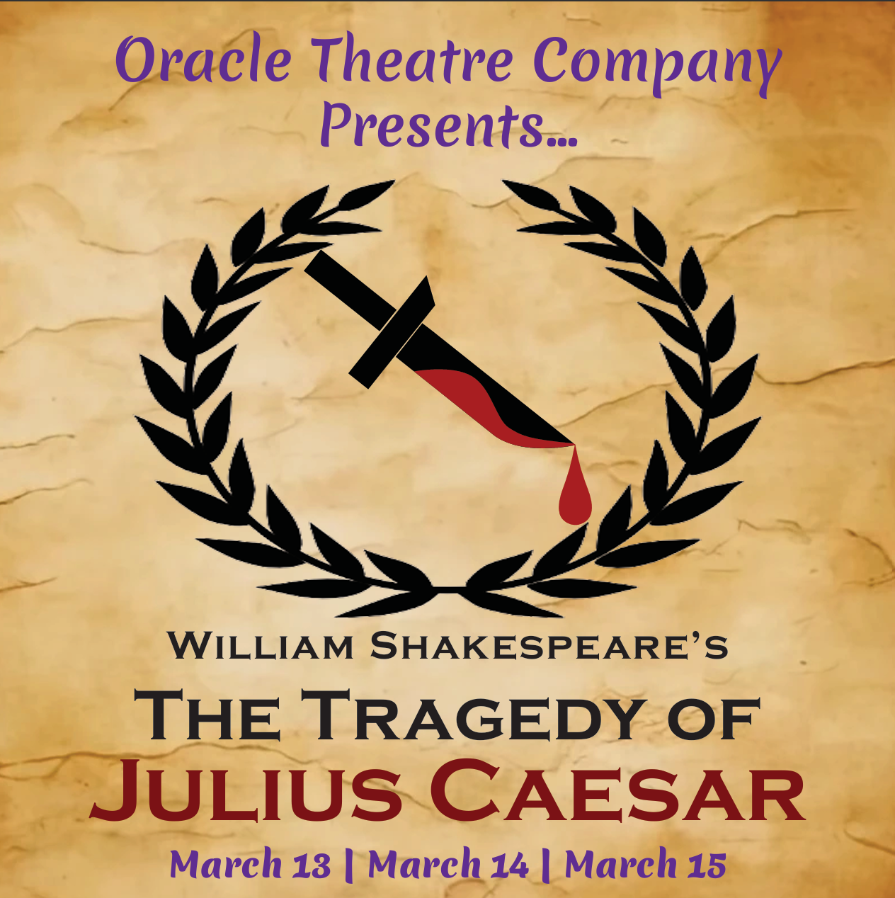 As Oracle Theatre Company kicks off its first show, we are kindly asking for support to help bring The Tragedy of Julius Caesar to life. Your support will go towards the cost of rehearsal space, costumes, props, set pieces, and the performance stage! The show will be commencing at Main Street Creative Arts Center on March 13th – 15th 2026.