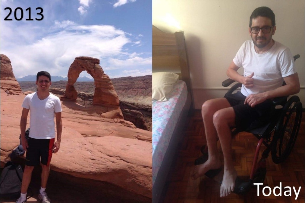 "This disease ultimately brought me to a point where I can no longer walk. I am currently confined to a wheelchair and rely on others for help in areas that I could normally take care of on my own. Earlier this year I underwent three major surgeries on my lumbar and cervical columns for decompression of the spinal canal [it's not easy, but if you want to see a picture of the stitches click here ]. As part of the recovery I will need to undergo a long process of rehabilitation with a lot of physical therapy. It will take at least one year of treatments to get to a point where I can hopefully walk again.