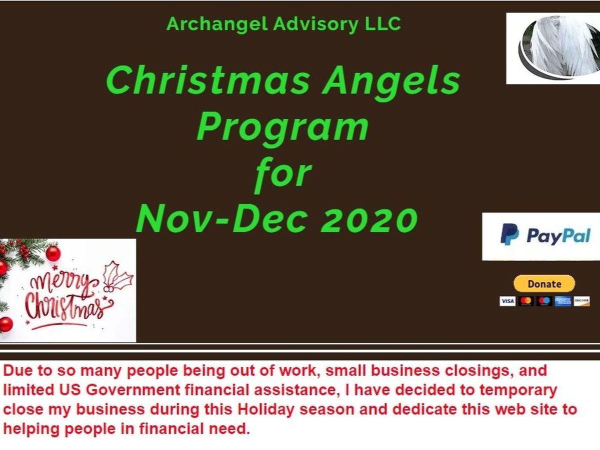 Archangel Advisory LLC will be accepting donations and distributing money through well known charities and will ensure that all funds get directly put into the people's hands that need the money this Holiday season.