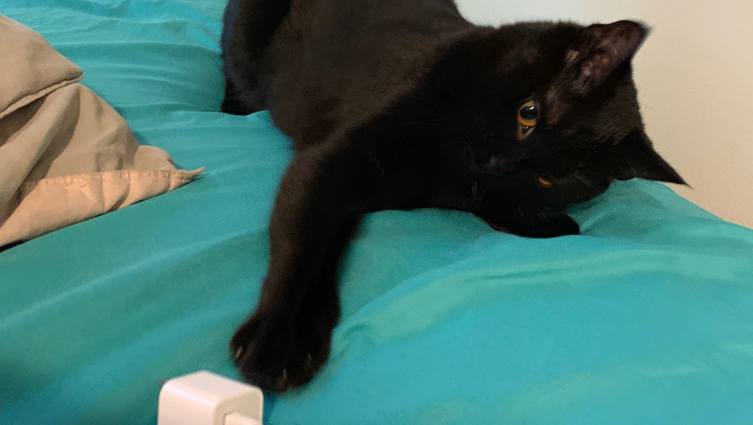 Eggo shows a lot of hopeful signs, like her undeniable strength and bravery in the face of a very confusing time for all of us. She continues to eat, drink, and use her litter box. With the help of the medication, Eggo has become more active as the days pass, getting out of bed and roaming, jumping, and spending time with us. She has even shown signs that perhaps her eyesight may be improving.