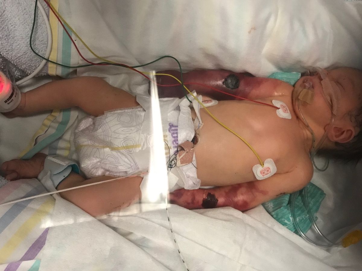 Our daughter Darcie May was born with a rare condition of severe blood clots in her arms and spent the first 5 weeks of her life in neonatal. Alongside suffering a stroke, she has spent the majority of her first few months in and out of hospital and has undergone several surgeries. The blood clots in her arms have caused her to lose all but 2 of her fingers and she now only has one hand, her right arm has deteriorated from the forearm.