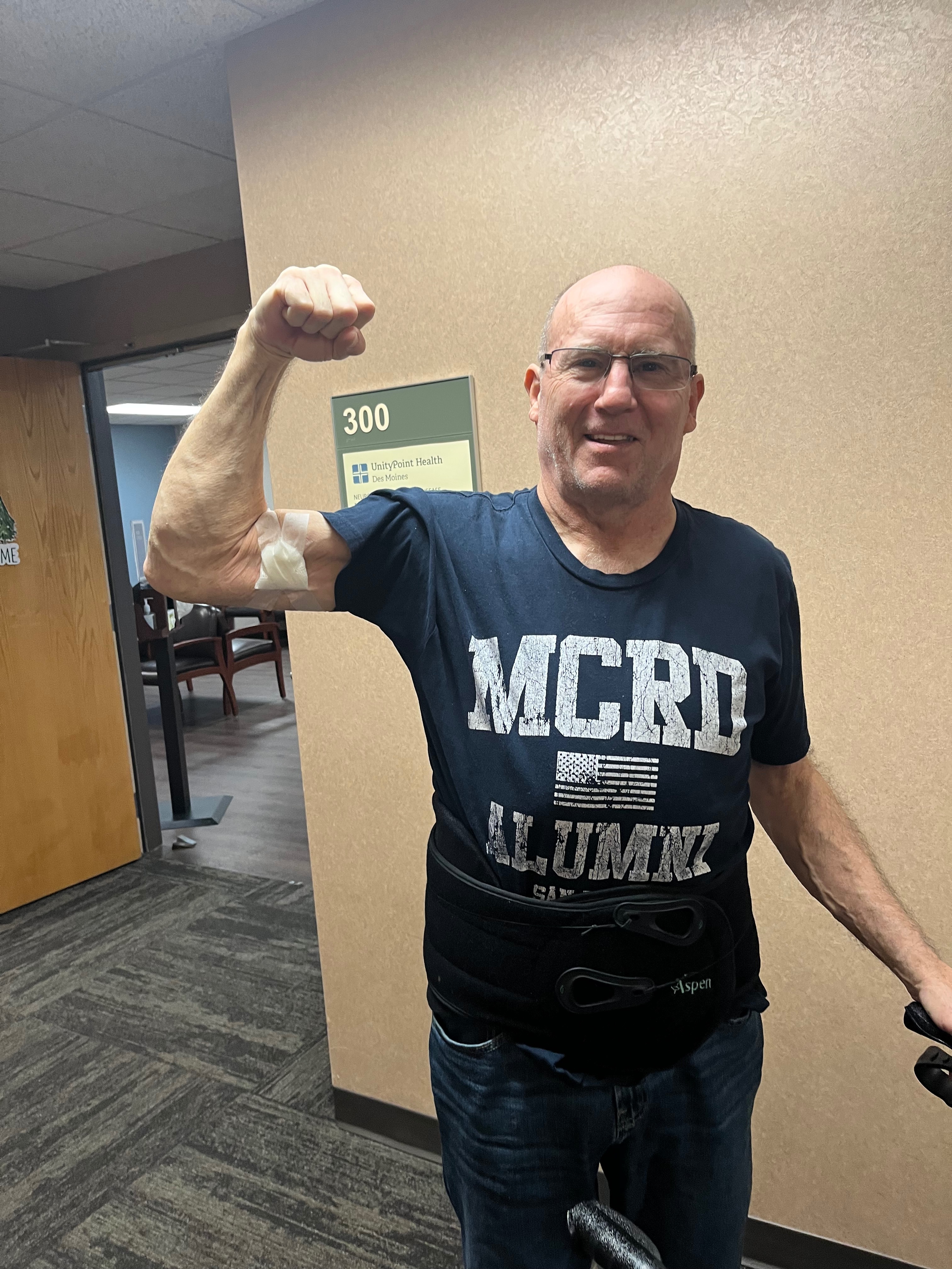 After 14 days in the hospital, he was discharged home with a PICC line to continue IV antibiotics as an outpatient. After nine days staying with grandparents, I was able to bring our three and 13-year-old daughters back home. Less than a week later, I had to call 911 because my husband was in such severe pain he couldn’t move in bed. He was transported by ambulance back to the hospital. Less than 36 hours after being readmitted, he started losing functioning in his left leg and foot. Due to this, the neurosurgeons decided not to wait for him to finish his IV antibiotics before doing surgery, despite the risks. A couple of days later, two of the best neurosurgeons in central Iowa completed a 7.5-hour, three-level spinal fusion surgery. Almost immediately after waking, my husband reported the severe debilitating pain was gone, though he still has lingering loss of functioning.