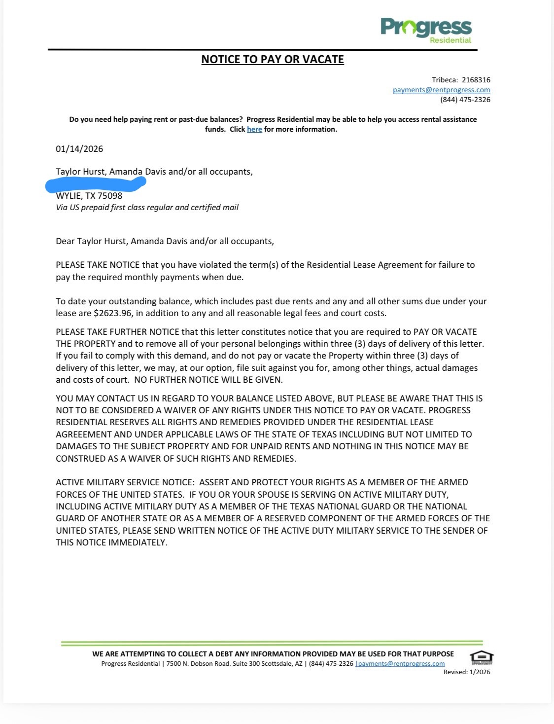 My family is facing an urgent crisis. Today, we received a notice to pay rent or vacate our home, giving us only a few days to pay our outstanding rent or risk losing our lease. The timing could not be worse. Right after the holidays, I received multiple hot checks for contracted work, leaving my bank account deeply negative. We’re really just trying to address the immediate need to pay our landlord and keep our home by this Saturday. We are able to provide our notice as documentation upon request, please just ask.