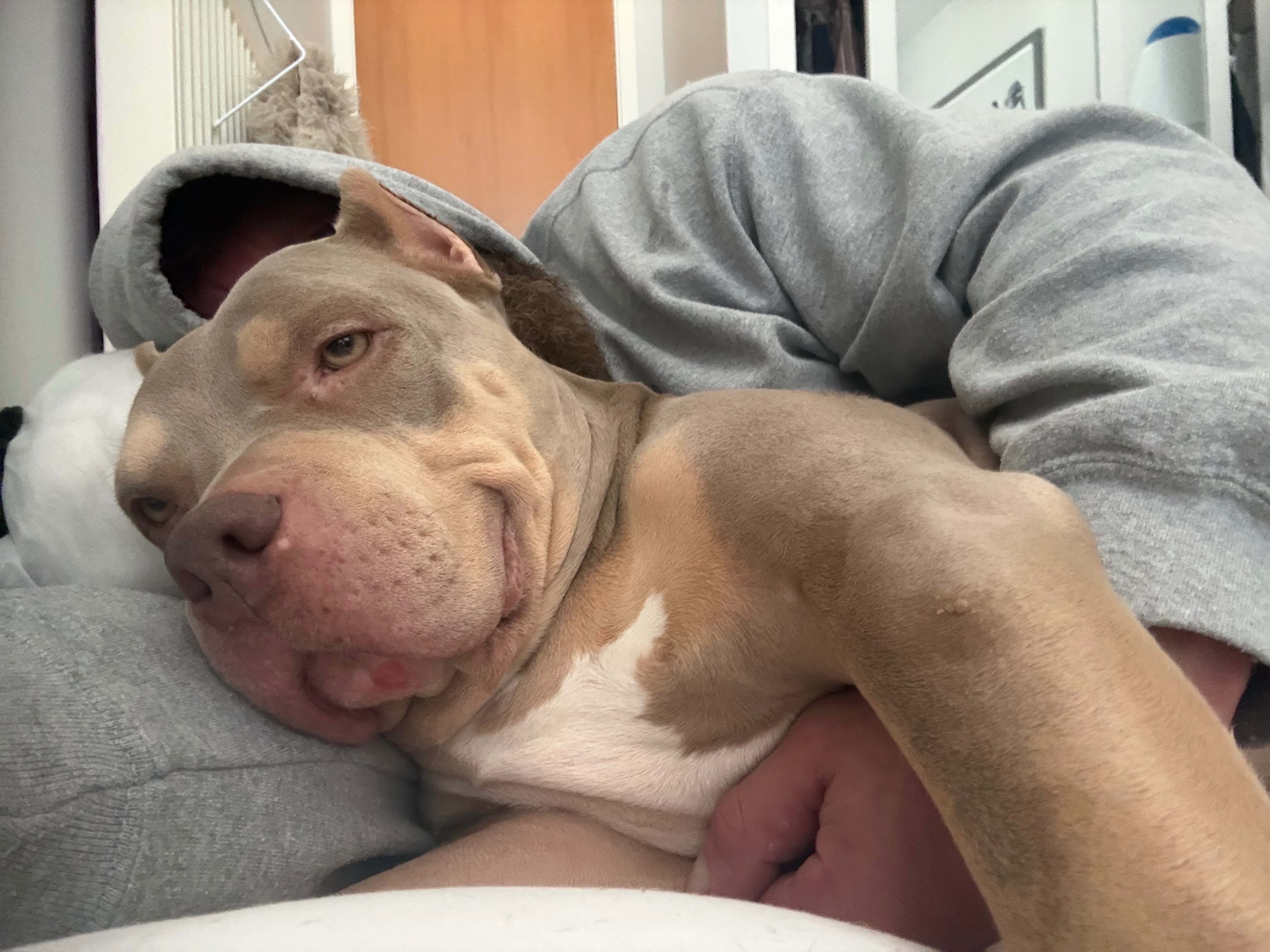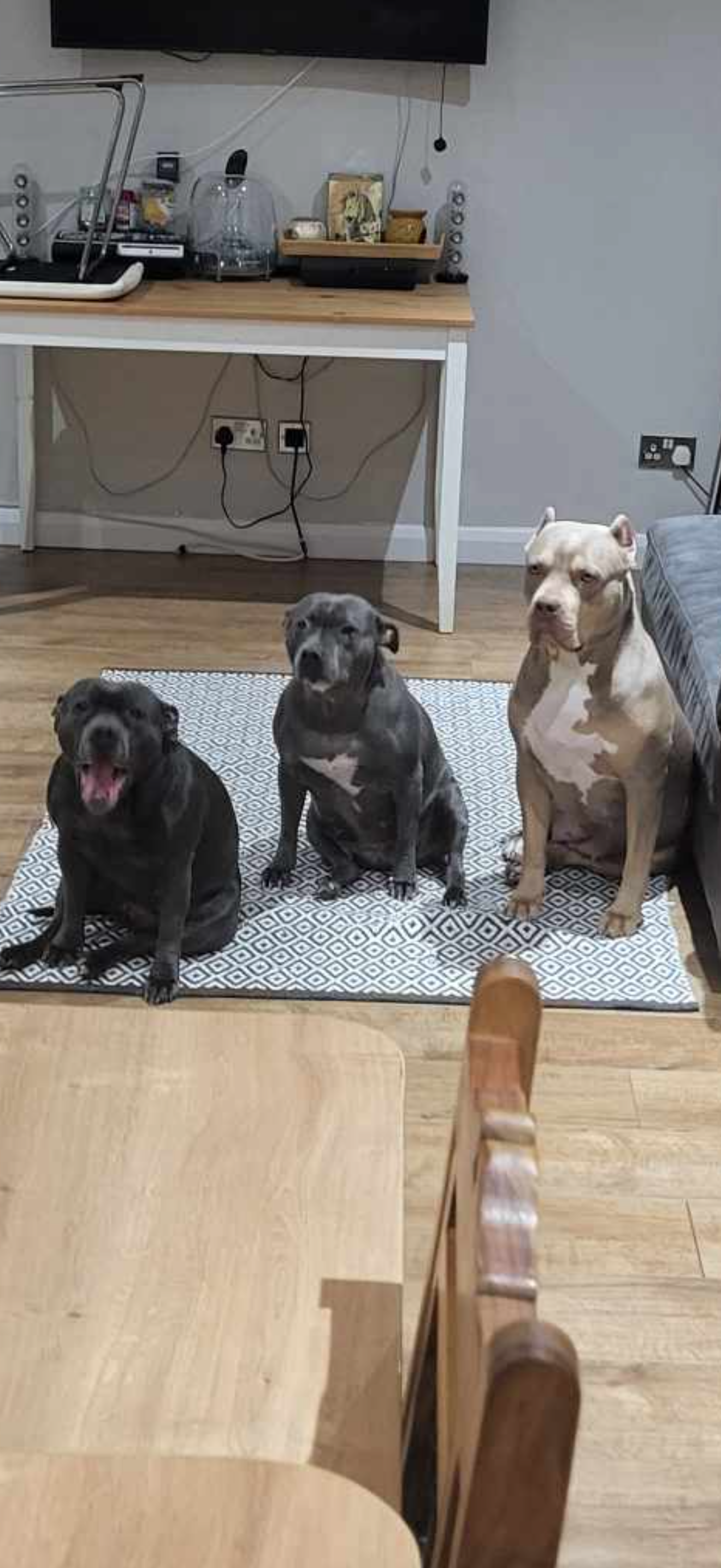 At the moment Marine lives with Us in Glasgow, while my two Staffordshire Bull Terriers are staying with my mum in Galashiels while I search for a new home where we can all live together again.