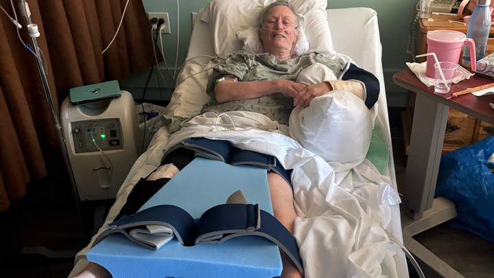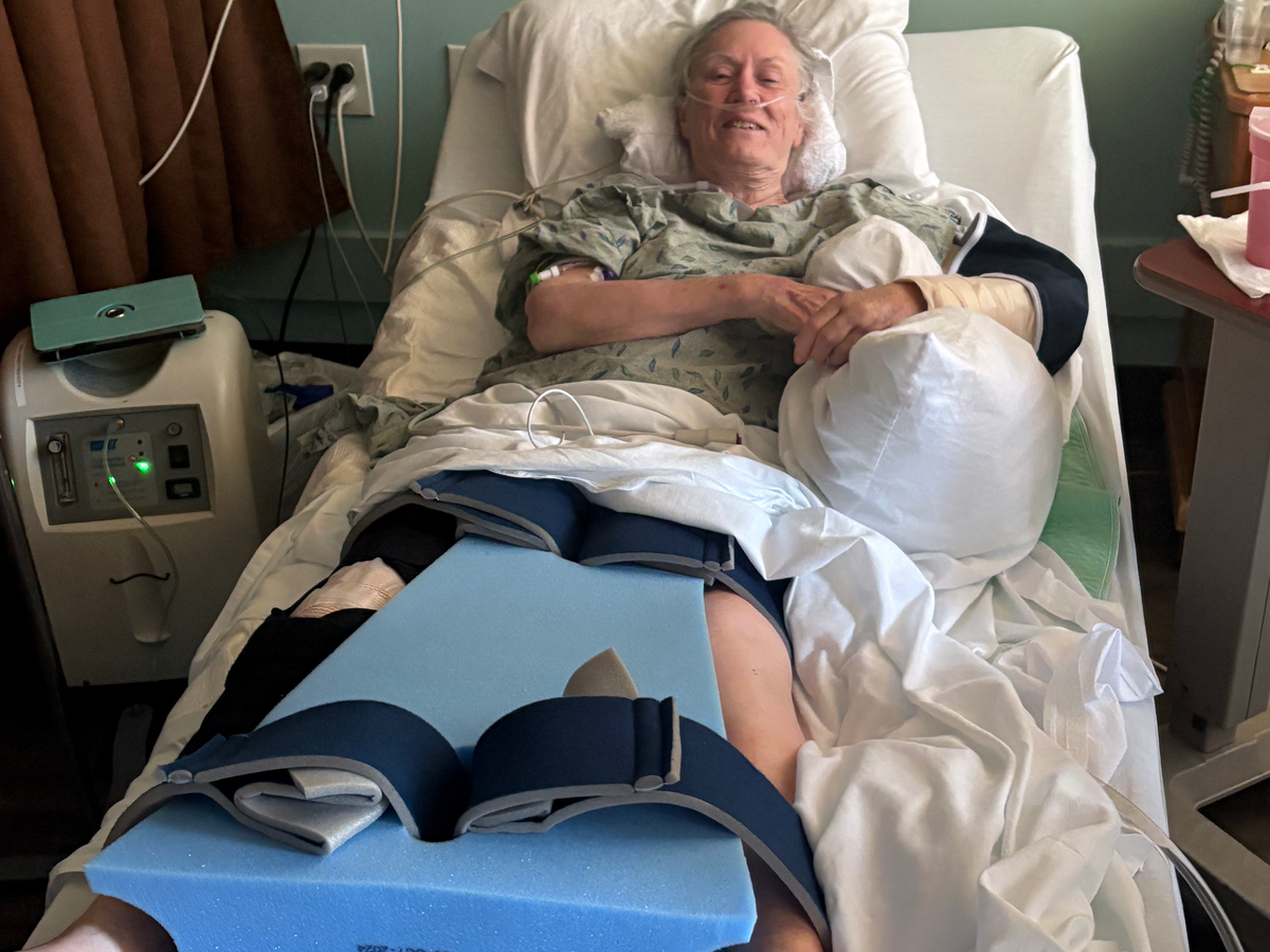 Because of her age they wanted to do all three surgeries at the same time but because of her age that put her at very high risk for not pulling through as the surgery was nearly 12 hours. Thankfully she made it and started to breathe on her own and was able to get off of the ventilator after being in the ICU for several days. She had a hip replacement, plate put into her elbow and multiple types of hardware put into her right knee. Aside from all of these injuries, she's also diabetic, has stage 3 kidney disease, has osteoporosis and had a stroke in 2013.