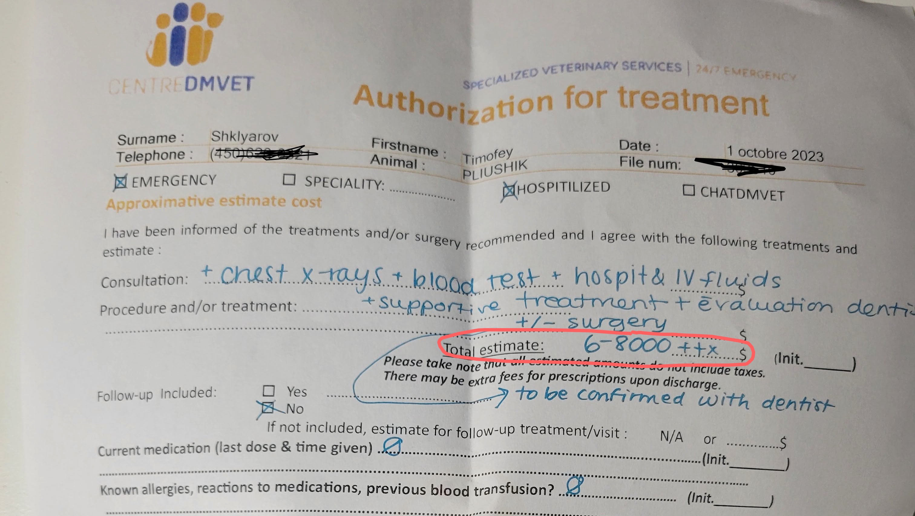 I'm trying to find other financing options, but e.g. fondationdmv suspended the donations. The clinic doesn't provide an interest-free loan, the company they suggest offers loan at annual ~17%. Credit card rate is ~22%. And we have to pay the full amount on the cat's pick up.