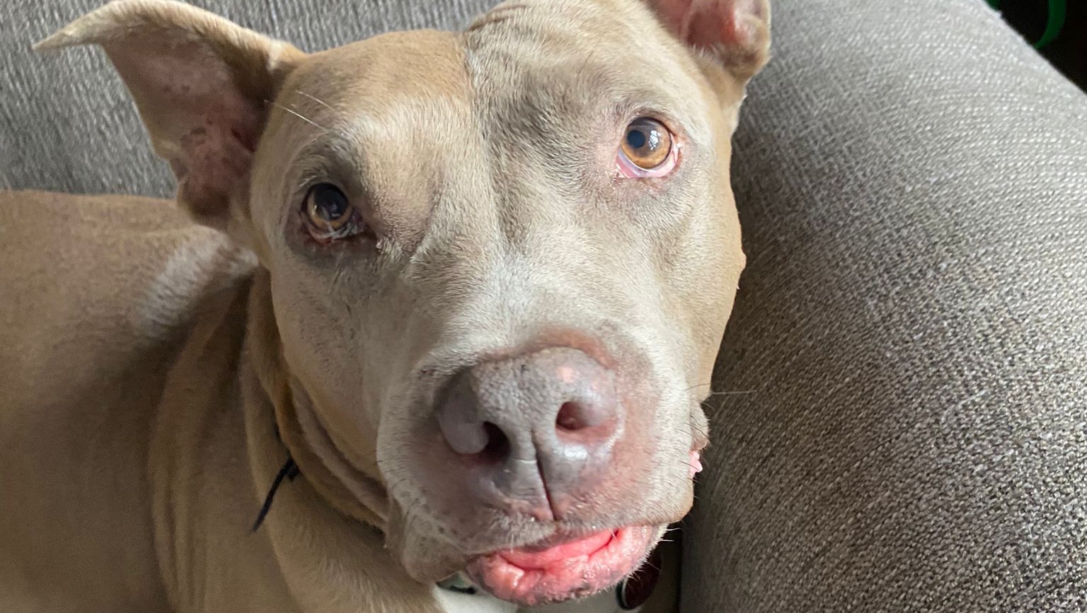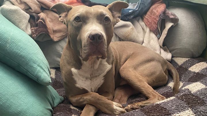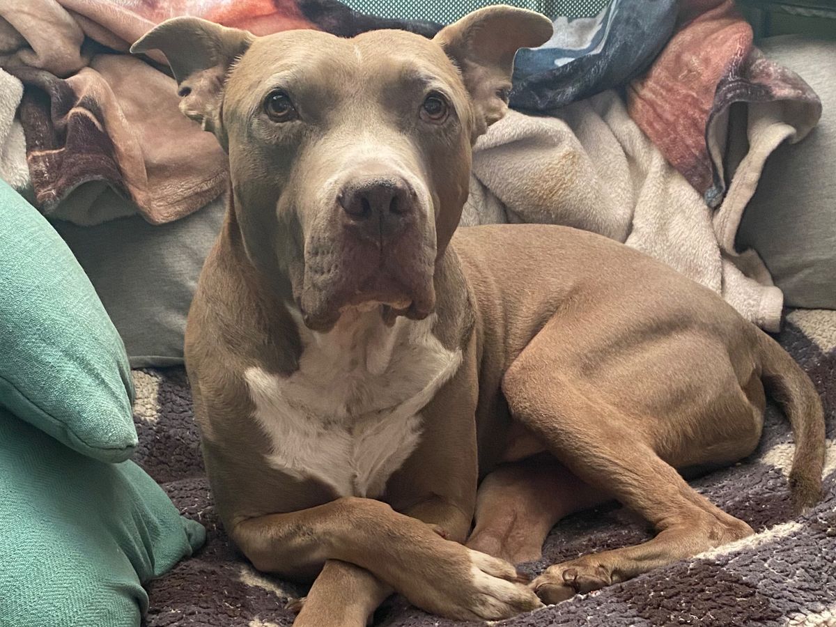 Ozzy is a 7-year-old Pitty-Staffie mix. My husband and I adopted him from the Manhattan Animal Care Centre in New York 5 years ago.