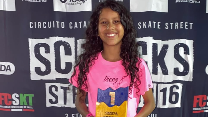 Paola Moreira, only 10 years old, is a young rising star in Brazilian skateboarding. Born in Torres (RS), she started skating at the age of six and, from her very first rides, already showed an uncommon talent for the sport. Due to the lack of proper training facilities in her hometown, her family decided to move to Criciúma (SC) — a decisive step in her athletic development.