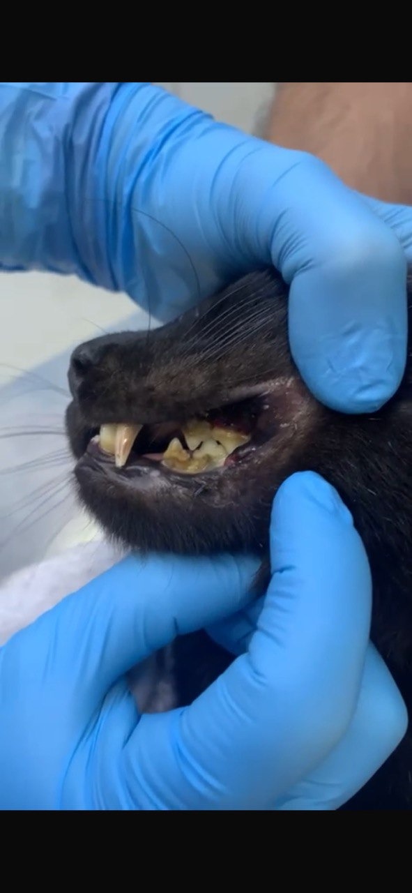 Unfortunately, the vet visit revealed devastating news. Parker was in very poor condition: bleeding ulcers throughout his mouth, severely rotted teeth — another month and his jaw could have begun to rot. Tests confirmed two serious and life-threatening illnesses: Feline Calicivirus (FCV) and feline hemoplasma (also known as Feline Infectious Anemia). Hemoplasma is caused by bacteria (Mycoplasma) that attack red blood cells, leading to severe anemia — without treatment, it is fatal. FCV has already destroyed most of his teeth, which must be completely removed. The painful mouth ulcers make it difficult for him to eat or live comfortably.