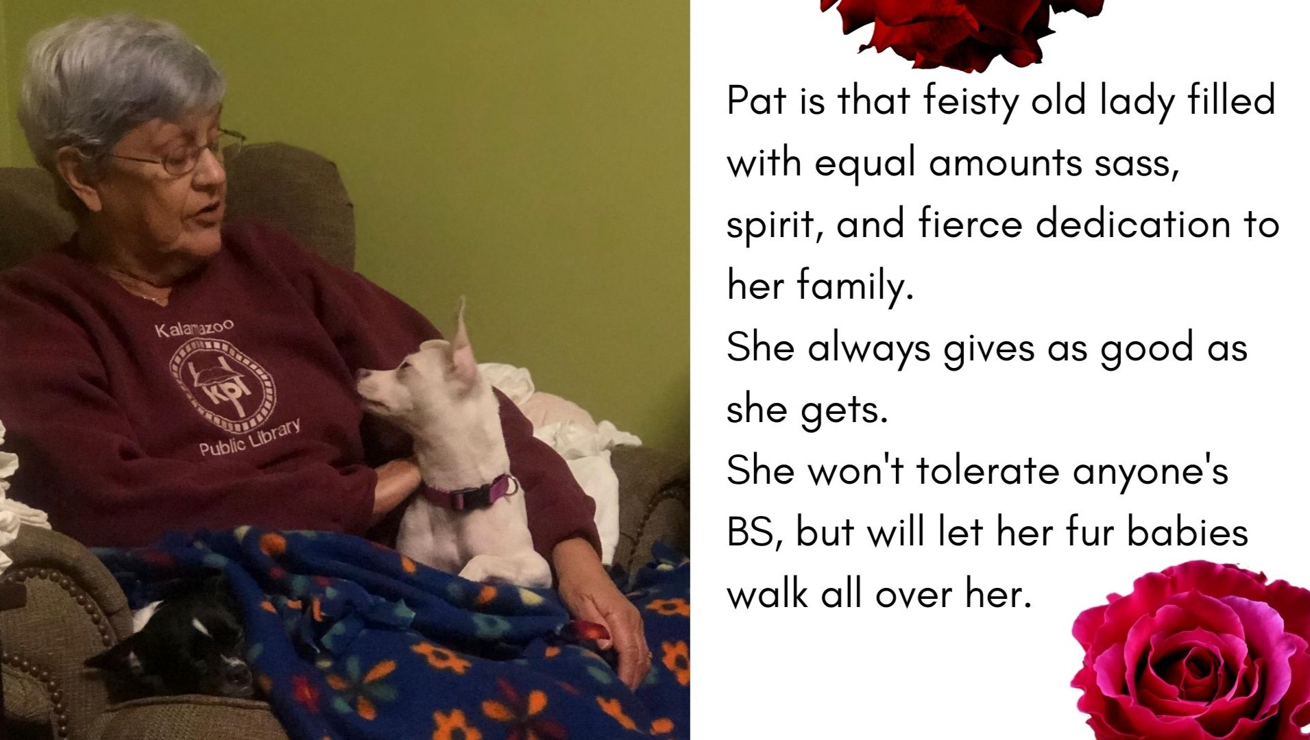 In July 2022 Pat had a heart attack. Just a few months later she suffered a fall, breaking her hip. After surgery, she was transferred to a rehabilitation facility to receive physical therapy at the beginning of November. Pat’s commitment to returning home enabled her to put an incredible amount of effort into her rehabilitation, surprising her doctors and therapists. Sadly, her recovery came to a halt when she had to be pulled out and transferred back to the hospital due to the rehab facility’s neglect.