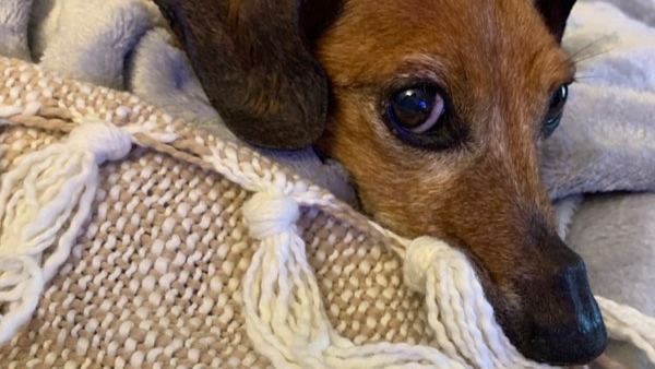 On August 9, our friend Noel's sweet noodle-dog, Neville Longbody, was called over the rainbow bridge.