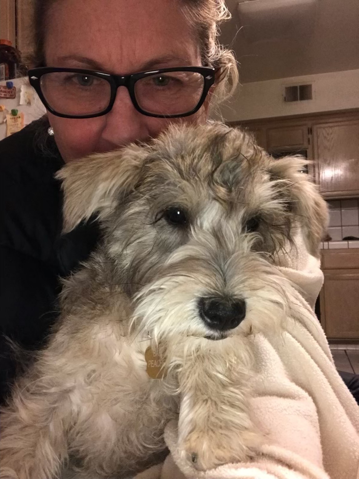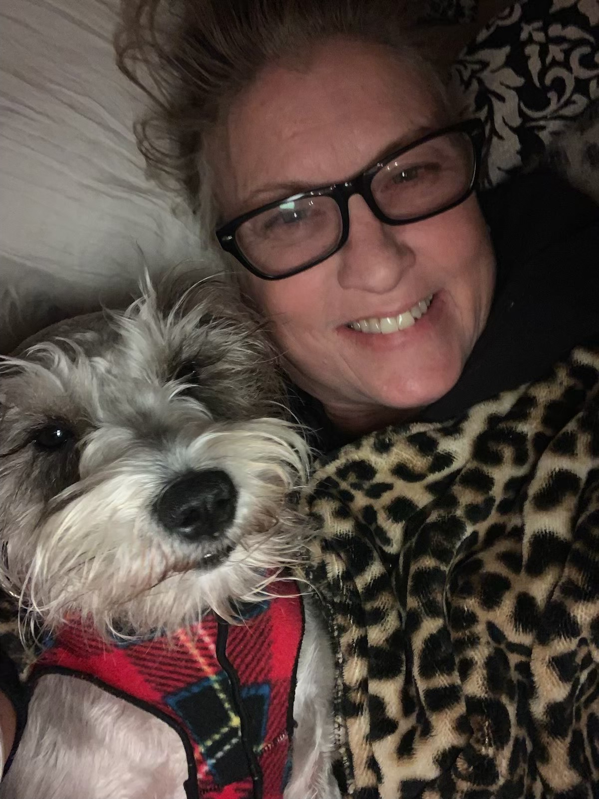 Peaches, my mom Sheri’s beloved schnauzer, is more than just a pet—she’s her emotional support animal and a true member of our family. Peaches has a gentle, human-like spirit, always offering comfort and understanding, especially when my mom needs it most. She’s the kind of dog who seems to talk with her eyes and brings stability and unconditional love to my mom’s life.