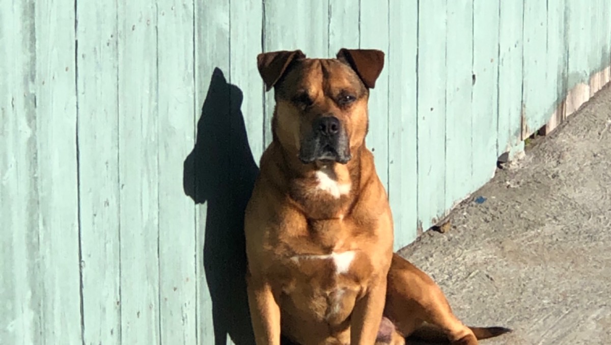 Pepe is our 13 year old Pitbull/Boxer mix that we saved from the Oakland Flea Market in 2009. Our family are big animal lovers and Pepe became part of our family. Pepe likes to play with his human cousins, loves to sunbathe, and loves balls and squeaky toys. Pepe is also a big foodie, he loves all food.