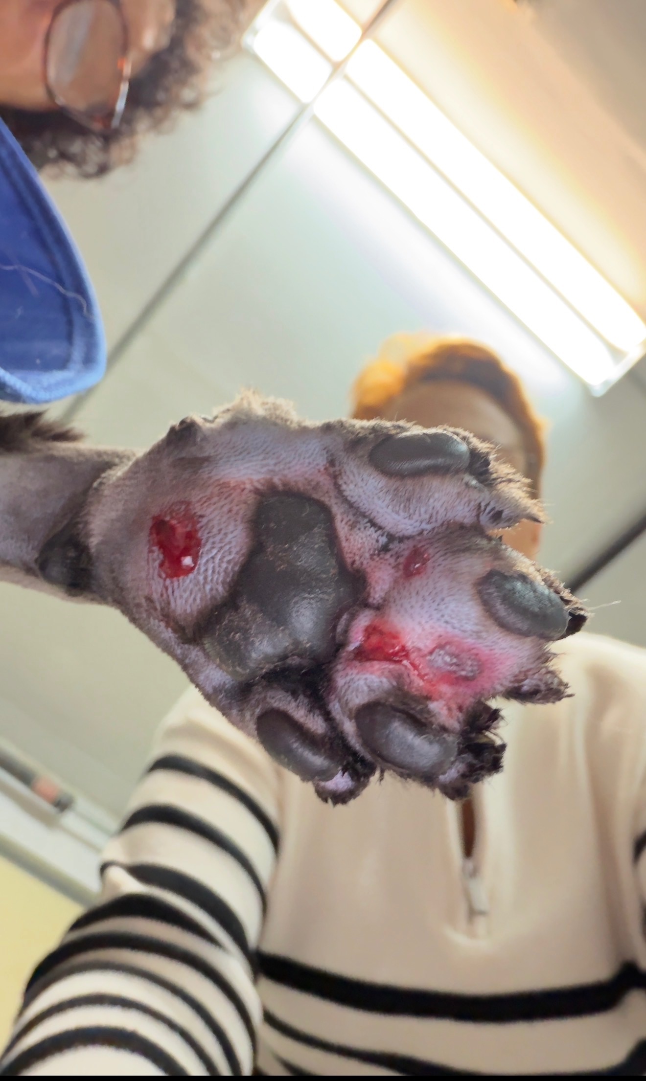 For several months, we had been taking care of a little black stray cat who has been coming to our backyard, hoping to tame him and find him a forever home. We started calling him Petinho - a pet name for "little black" in Portuguese ("Pretinho"). Unfortunately, Petinho went missing right before Halloween, and we feared the worst. When he returned, it was with a badly injured front paw. It broke our hearts to watch him limping and crying .