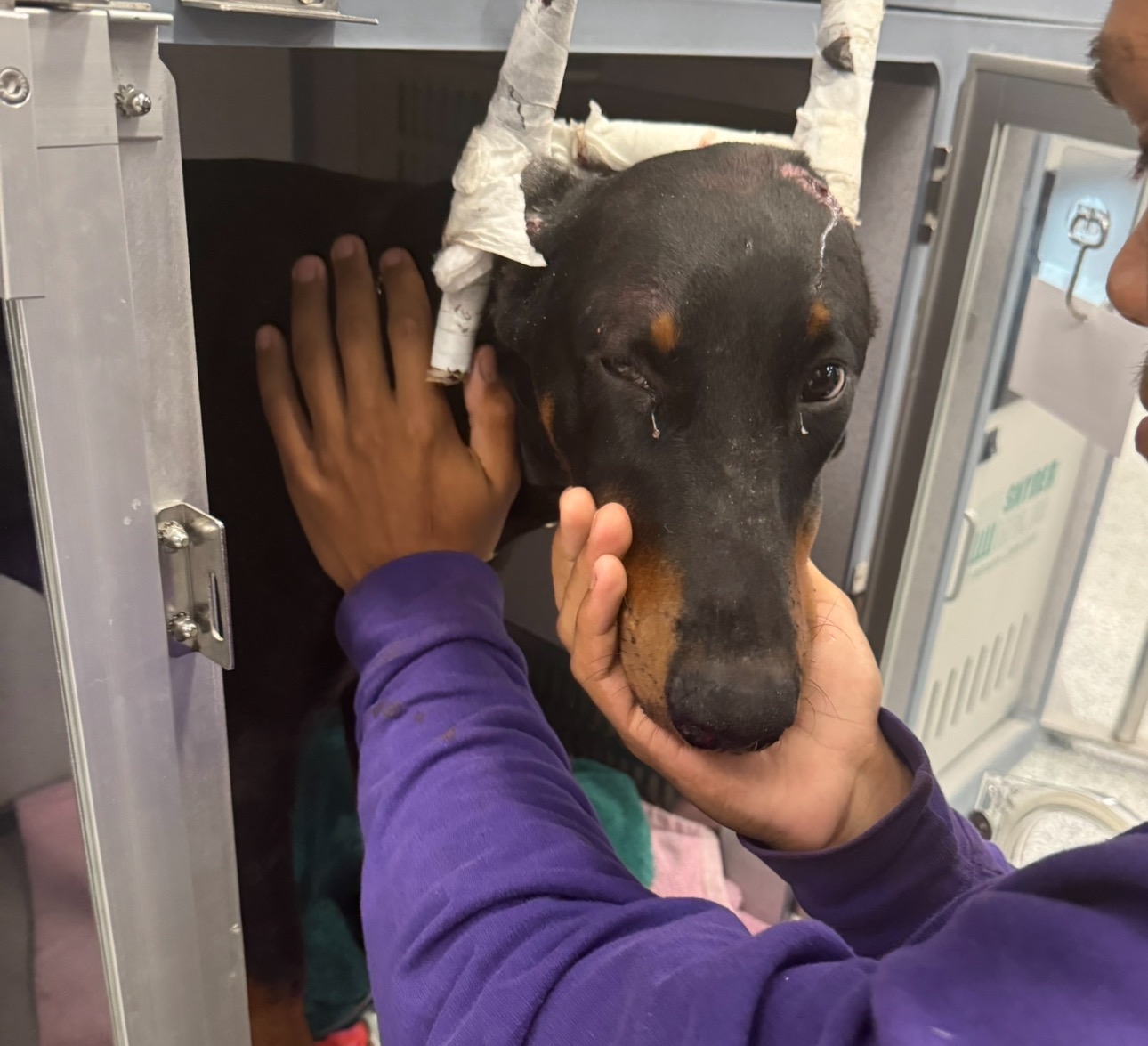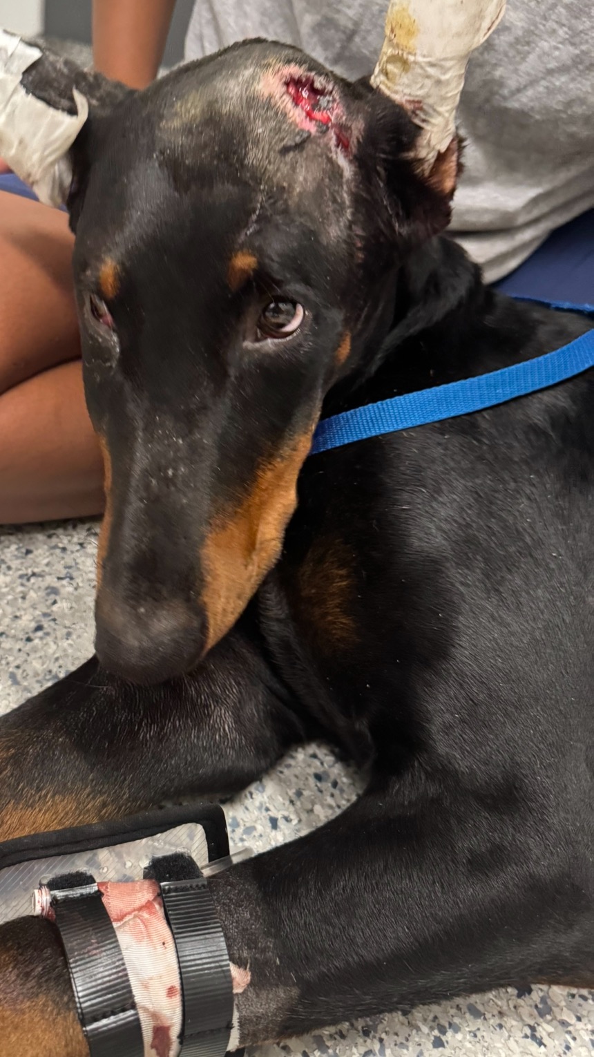 Our sweet boy Phantom our Doberman got hit by a car he suffered brain bleeding and a jaw fracture he needs some more scans and possible surgery for a full recovery which we cannot fully fund right now ,anything helps all of the money will be used for medications ,vet care and any surgeries moving forward to recovery