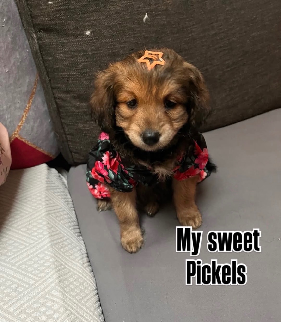 this is our new puppy pickles she is my moms ESA she unfortunately fell when playing with her sister and has a fracture tibia that has split. she needs to see an orthopedic surgeon to get it fixed if you could help us with anything you can we would appreciate it so much. anything helps us
