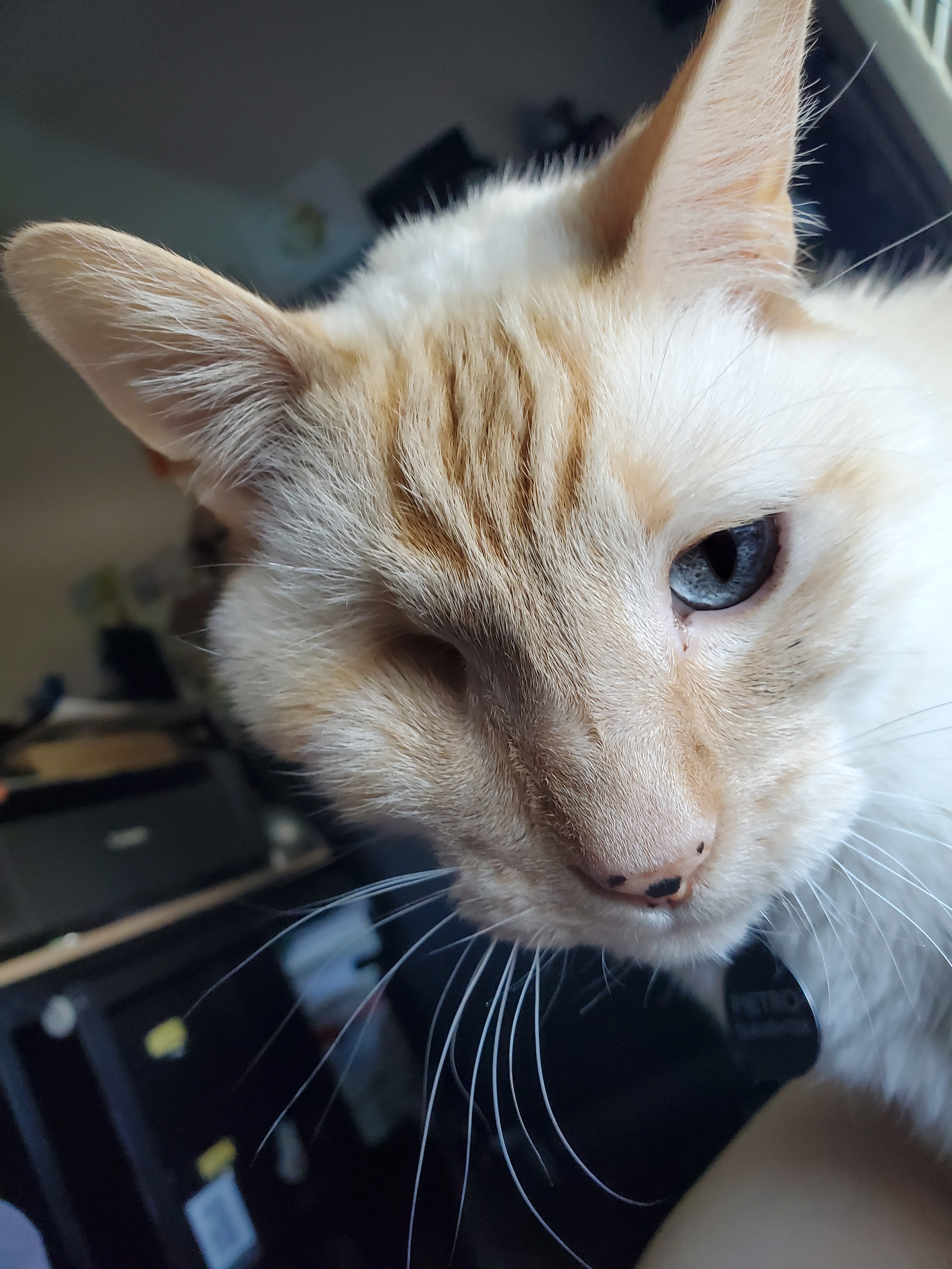 Over the last week we had noticed that he was losing weight and wasn't eating as much, and when he couldn't seem to eat some of his favorite treats this morning we knew it had to be something only a doctor could help us with. We thought maybe he was having an issue with his teeth or a sore in his mouth that was making eating dry food difficult, as he seemed to eat tuna just fine. After many hours of waiting to hear from the vet once we brought him in, the doctor told us that his body chemistry is looking very unusual and could potentially be linked to some sort of kidney disease. They recommended hospitalizing him for 24-48 hours (maybe more, depending) so that they could confirm how treatable it may be. All our greatest fears are that his lymphoma is coming back in his kidneys, and we are suddenly looking down the barrel of saying goodbye to our sweet baby boy.