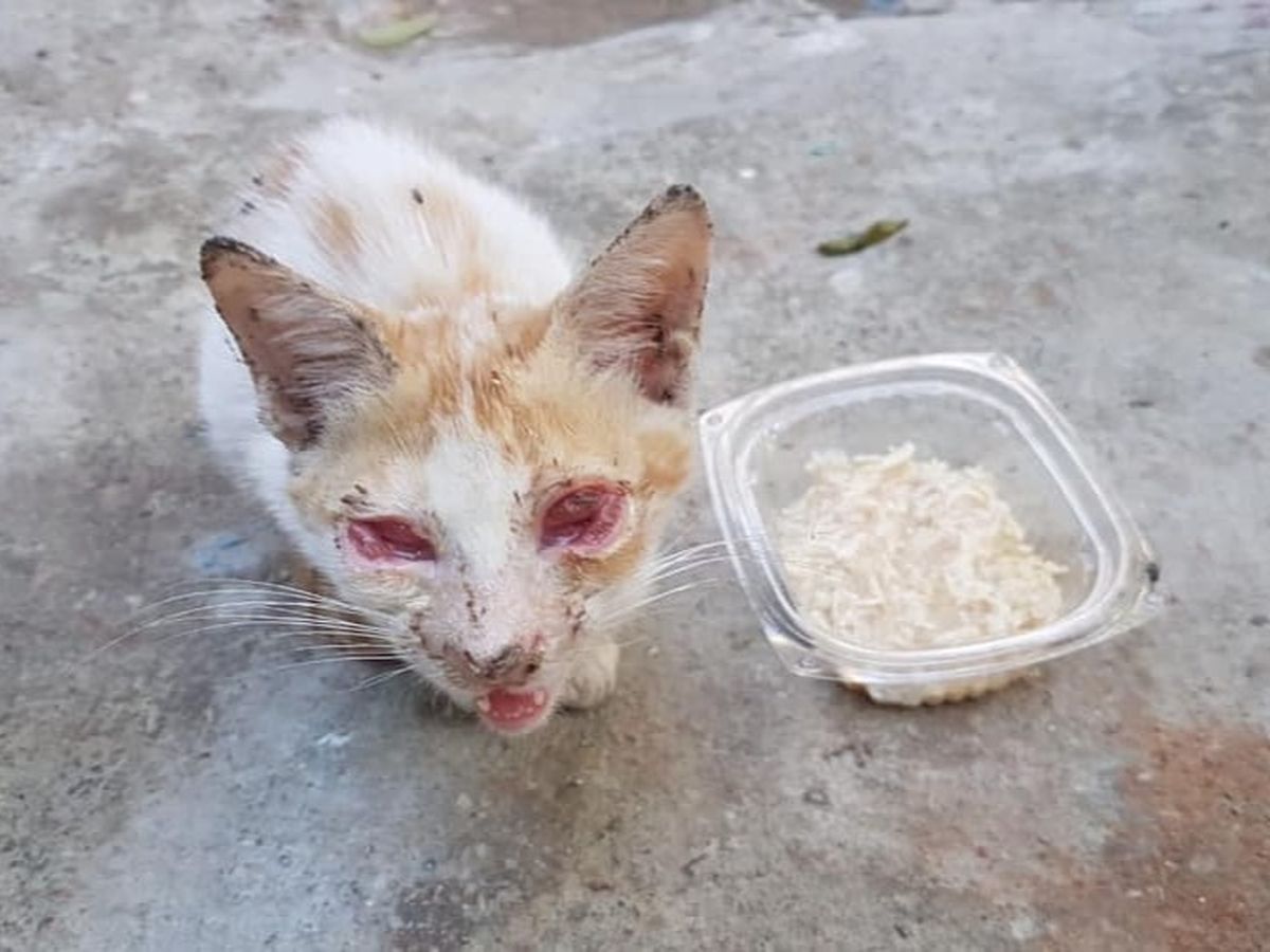 This kitten needs donations for urgent medical care including both eye enucleations and then help towards finding a loving home. If you can spare anything you can part with, it will go towards healing this poor kitten and providing shelter, nourishment and veterinary care, and helping it to be adopted and relocated to a forever home.