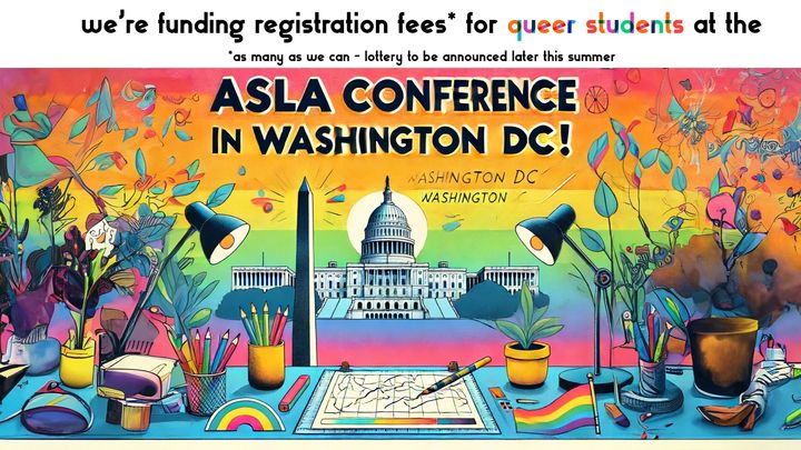 We're PRIDE x ASLA and we're raising funds to cover as many registration fees as we can for queer students to attend the ASLA Conference in Washington, DC this fall! Lottery to be announced later this summer on our IG account @pridexasla.