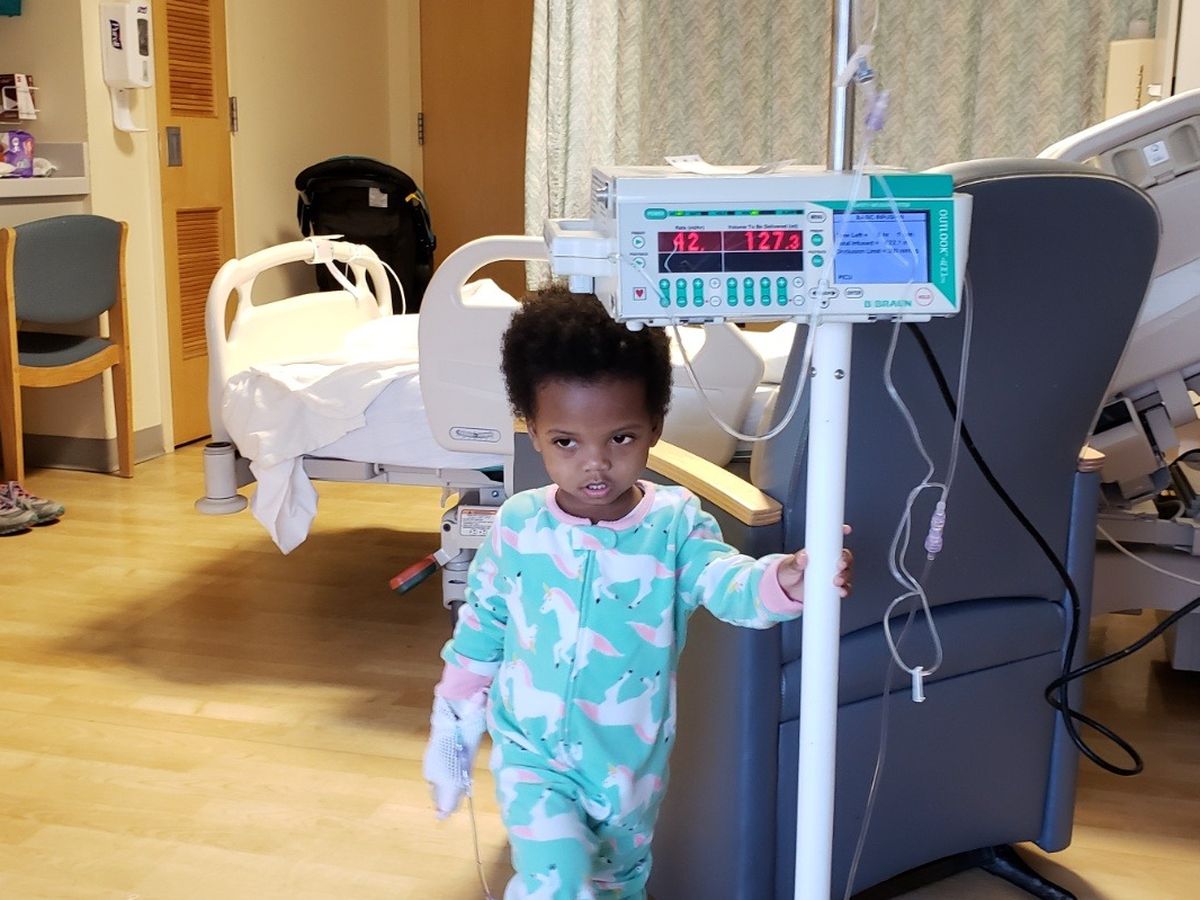 Zion has already been hospitilized more than 30 times and is traumatized by the numerous blood draws, IV's , X-Rays, MRI's and invasive procedures. In addition to Sickle Cell Disease, Zion wears bilateral hearing aides and requires a feeding tube that delivers formula thru a tube in her belly due to feeding problems.