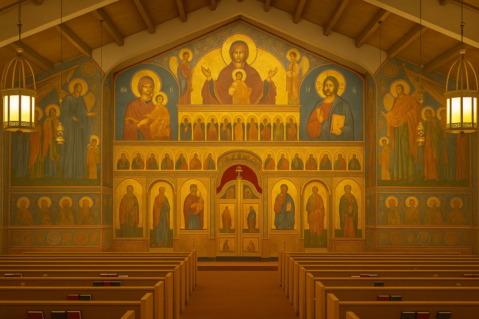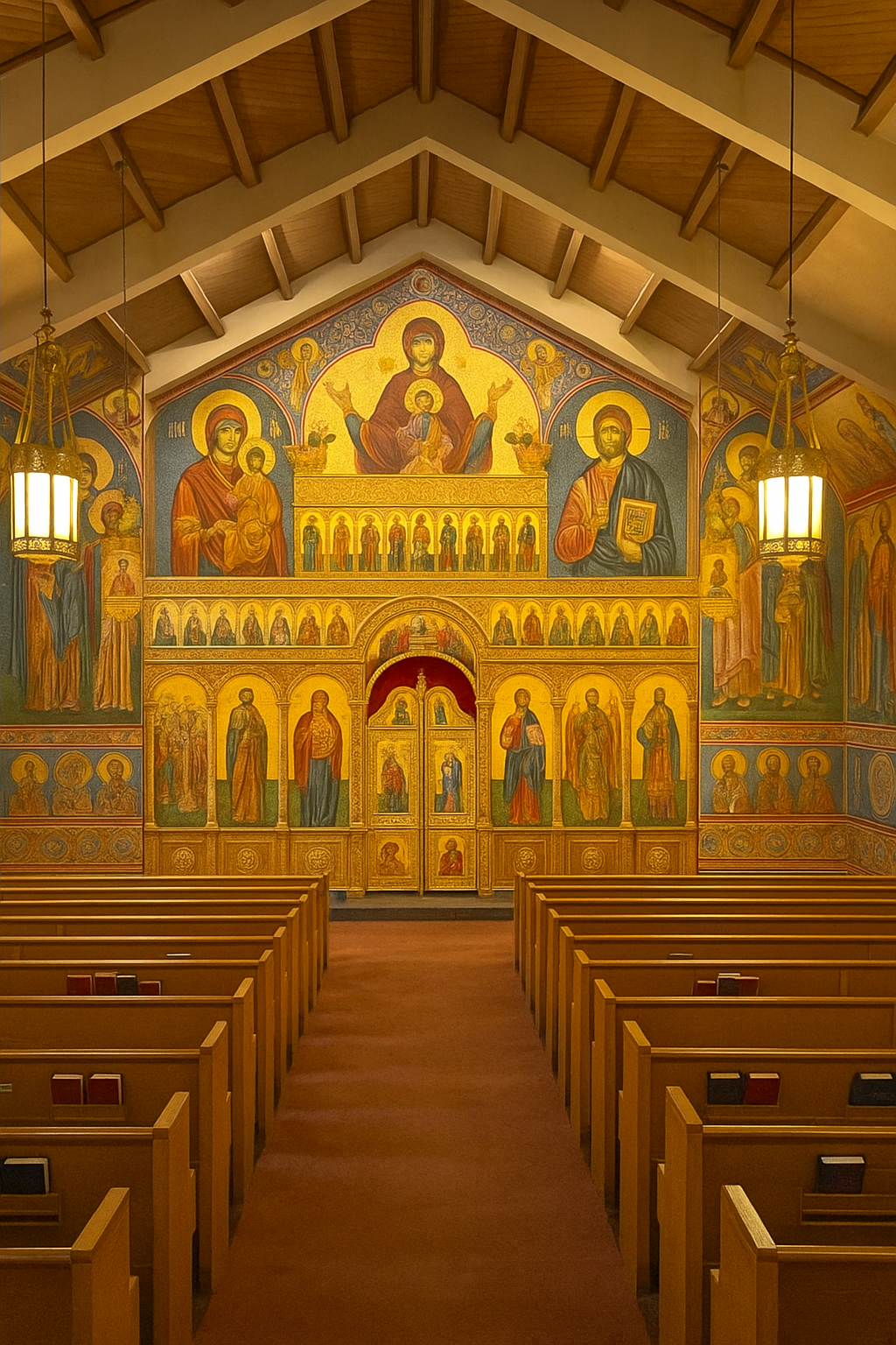 Remodel the interior to reflect the beauty and sacred tradition of Orthodox Christianity, with icons, an iconostasis, and the proper liturgical structure