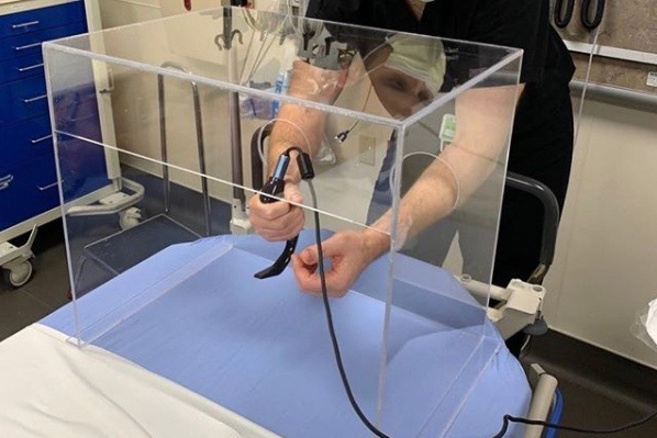 Intubation boxes act as a protective shield while a patient is intubated and may decrease the chance of COVID-19 exposure for front-line ER/ICU staff when used in addition to standard PPE.