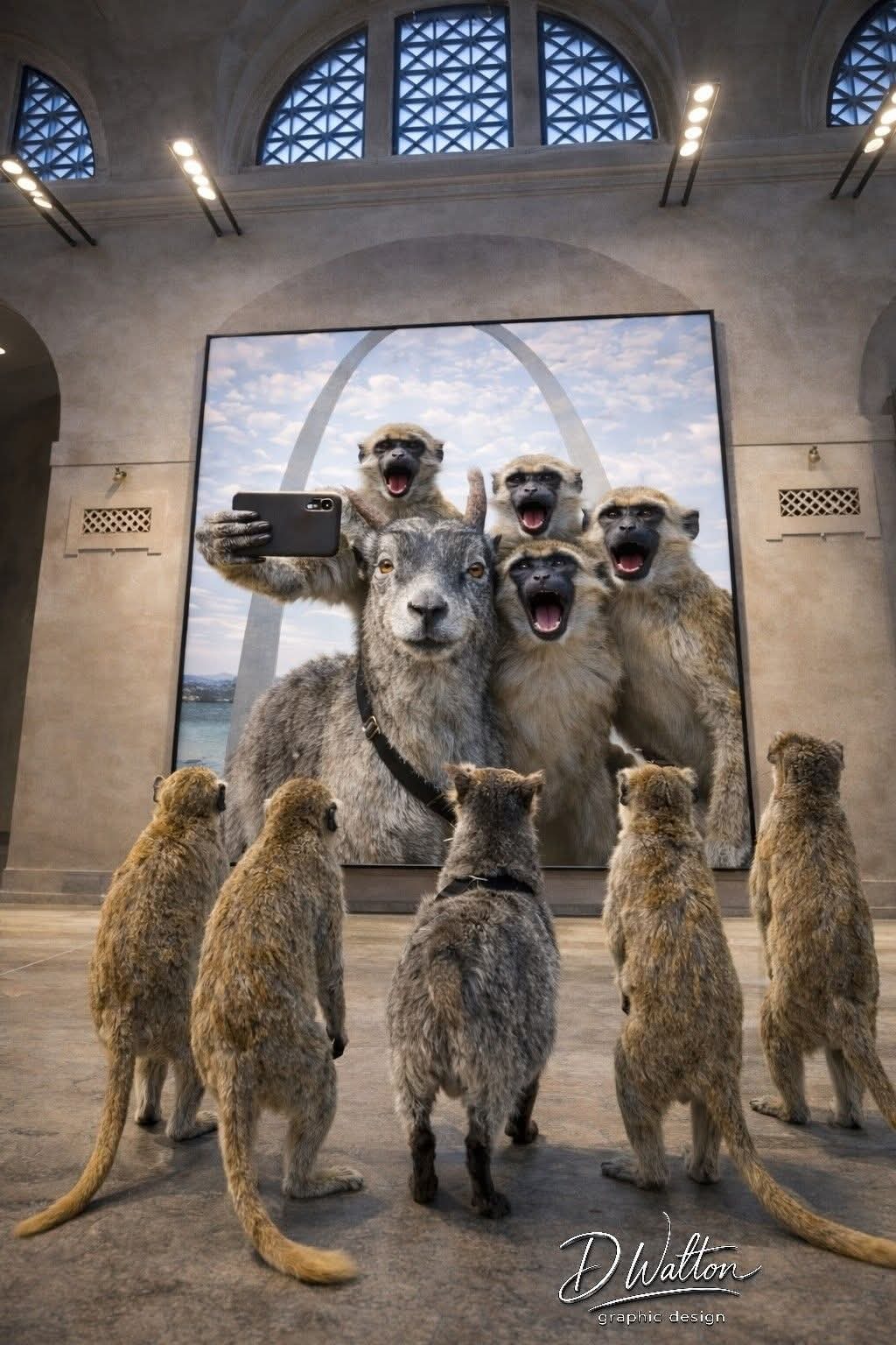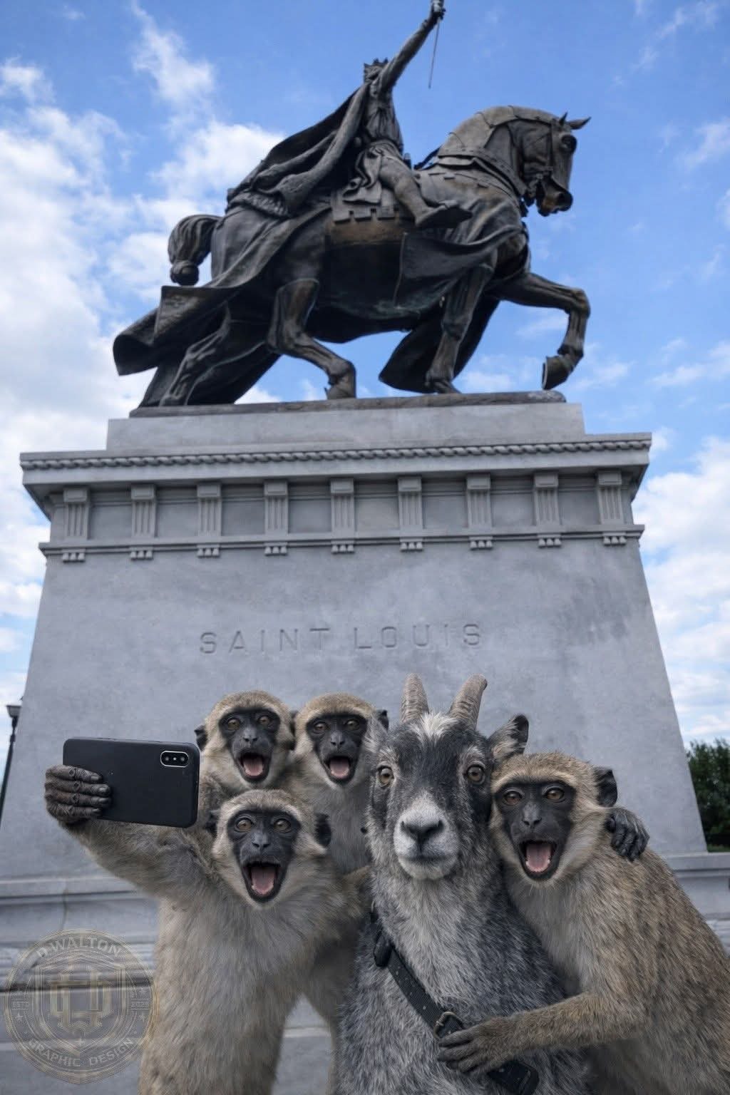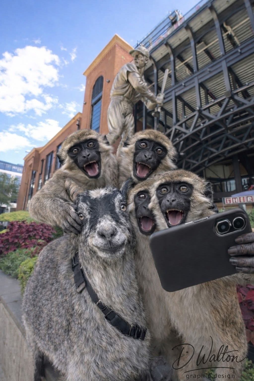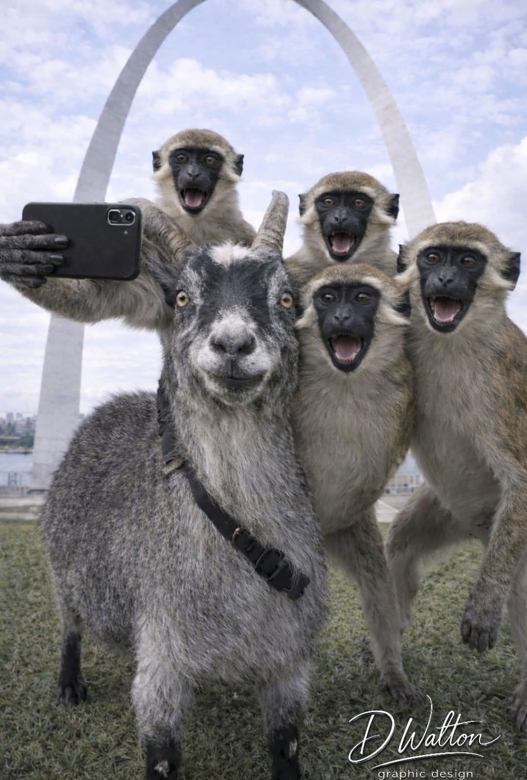 D Walton Graphic Design company is excited to bring a unique children’s book to life, inspired by real events in St. Louis. Earlier this year, news reports shared the story of four monkeys on the loose in North St. Louis, followed by a goat wandering downtown. This sparked the idea to have these unlikely friends meet up and embark on an adventure, touring famous family destinations, restaurants, and landmarks in St. Louis and beyond. The story captures the spirit of exploration, friendship, and the magic of seeing the city through new eyes.